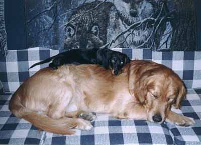 Best Buddies - Chance 2-1/2 year Old Golden with Lily 5 Month old Mini - by Heidi Reid-Healey |