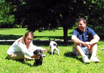 Marie holding Sadie, Ed holding Millie & Robin discuss the finer points of dog life |
