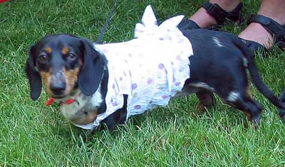 Karen and Phil Bracewell's Doxie "Gabi" all Dressed Up |