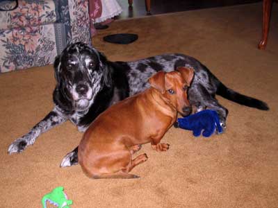 Maxine 13 year old Australian Shepard/Lab mix With Chester in the Foreground |