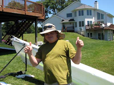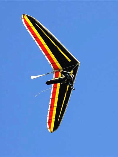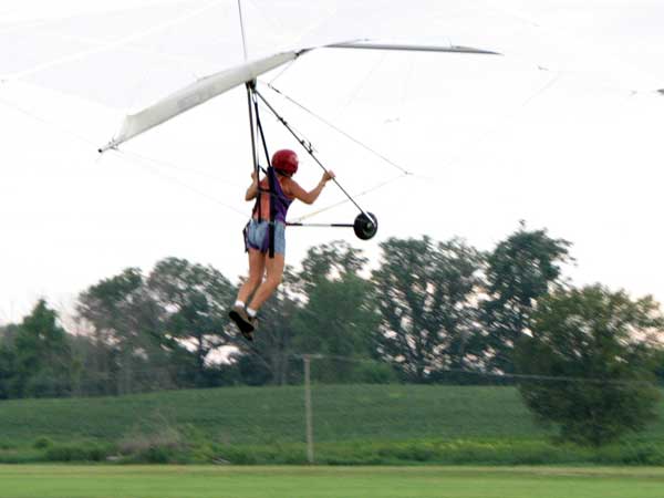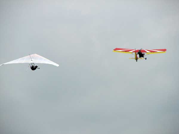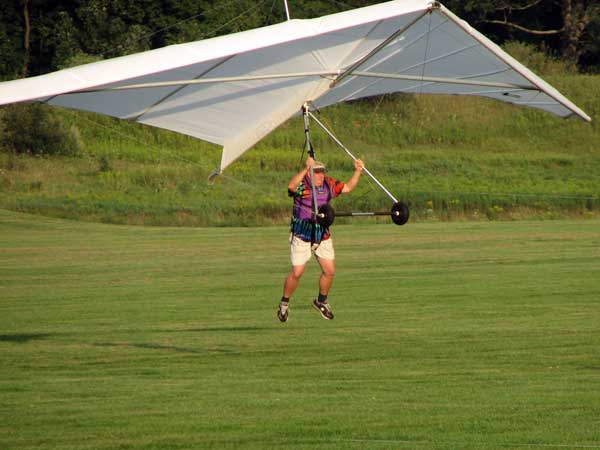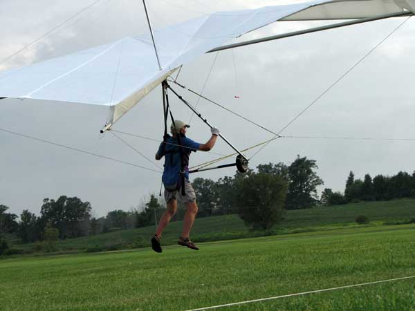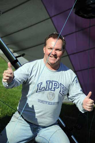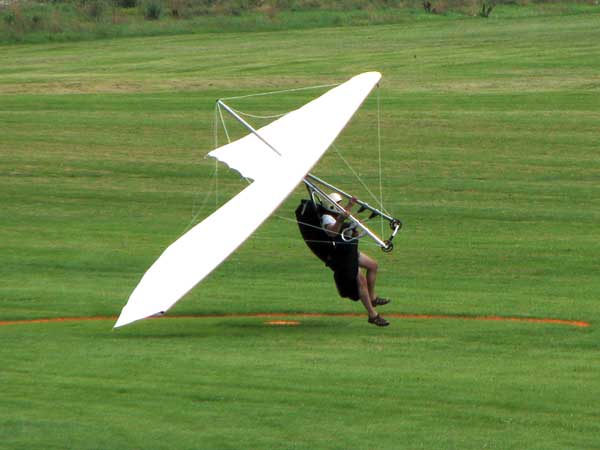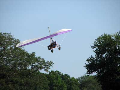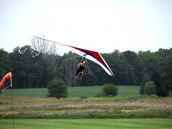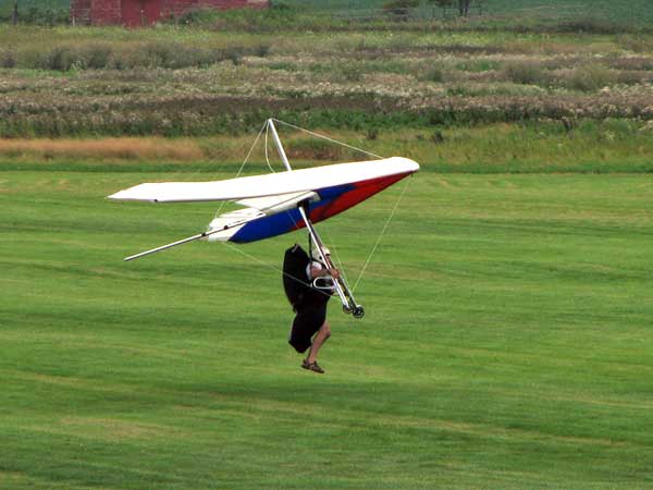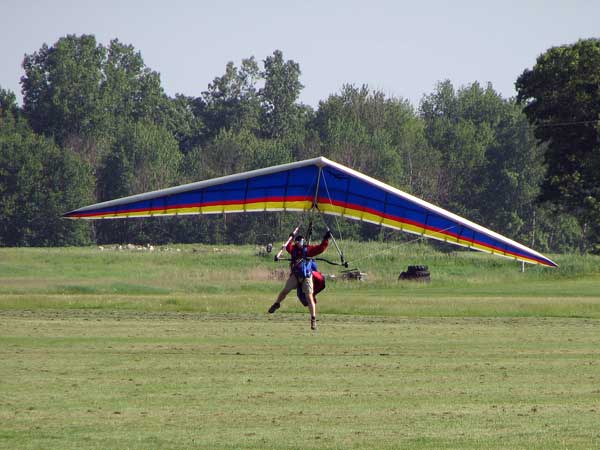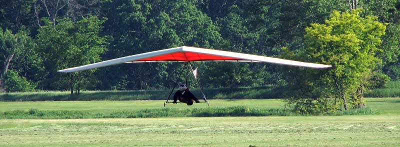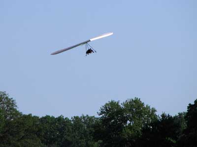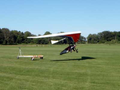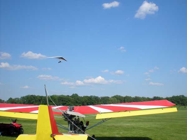 Memorial Day weekend at Cloud 9 - May 29-30, 2010 The forecast looked great so away I went and arrived at Cloud 9 field at noon Saturday. Katrin and Karl from Rochester NY were there all week and getting their towing certificates. It had been a good week for them with only Thursday and Friday being a bit to windy for learning. By 2 pm there were about ten pilots ready to fly and I watched as a few were starting to stay up in the all blue sky so I got in line and Tracy towed be up to a nice thermal just north of the field and I was able to take it to 5,000 feet and slowly drifted back to the south where I left that one and searched for others never to get that high again. I was having a good time to the south of the field flying around watching as many others joined me in the air. Mark Bolt was at the Chicago meet and Mark Dugan was away visiting family so two of our hottest pilots were missing. Floyd Cadwell had the longest flight of the day with close to four hours on his Atos rigid wing and Chris Bratsis had a wonderful high flight of close to three hours on his Wills Wing T-2 150. Chris has really tuned into his T-2 and I find that I am usually trying to catch up to him. Lisa Colletti was doing her spectacular high flying for hours on end and at 5 pm she came down to tow Tracy and their students. Most everyone had great flights on Saturday and for me it was a one hour and twenty minute joy ride and when I landed I expected that the fun would soon be over only to watch Floyd fly for another three hours. I guess I should have launched again but instead, I took Flash for a swim and helped with the many tandem flights. Sunday started with a great forecast for lift and cumulous clouds started forming around 1 pm. I was first off in the south wind and Tracy again towed me to a good one and I was able to get over 5,000 ato again but after 35 minutes I had found a great sink hole and landed. I watched as a few others were staying up so I tried it again and Tracy took me to another good thermal and again I went up to 4,500 feet and played all over the area when I almost lost the lift again and I got down to 400 feet over the landing area and I was ready to land when I found a little beeper to the south of the field and it grew into a whopper all the way up to 5,800 feet so I was on my way again. I saw Lisa about a mile to the south and finally caught up to her and after a few minutes Lisa flew farther of to the southwest and I stayed with the big one. After a bit I was in search mode again and flew to the east where I spotted three gliders circling and finally I caught up to them and noticed that it was Brian and Chris and later Chris told me that Lisa was well above us all. We hung out together for a half hour and then I decided to head back to the Cloud 9 field and when I got there I found a little something to stay up in for about 15 minutes and then landed after watching three others landing. Five minutes later Chris Bratsis came in for a good landing after another long flight. My airtime on Sunday was three hours and 25 minutes and I topped out at just under 6,000 feet ato and Yes, I did hit the spot landing. For me 2010 has been a great year and so far I have not had a bad trip. I've been really lucky and hope that my luck holds on. Photos Below |