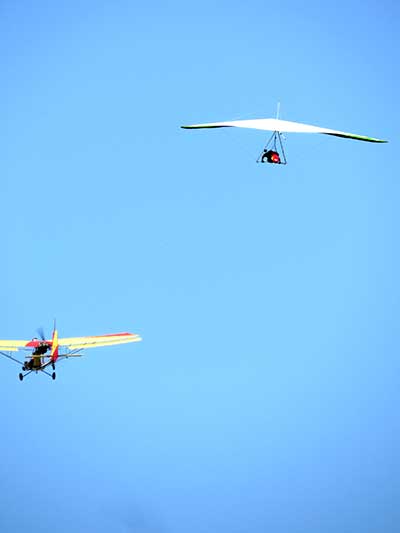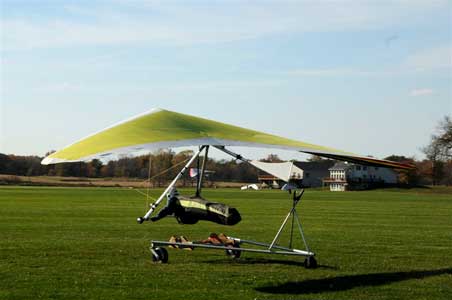 The Skydog Report Cloud 9 October 15, 2010 The forecast for Saturday was good so I gathered my equipment and zoomed off to Cloud 9 and arrived late for me which was 12:30 and when I arrived there were about seven gliders set up already so I scurried getting my glider set up and was ready to go about 1:30. While setting up I had noticed what I thought were thermals drifting though and the low winds were about 8 miles per hour and the thermal highs were like 15 mph. When I had gathered my harness and glider I rolled out to the take-off at the east side of the field for a west wind take-off and shortly after the other pilots were heading over there too. Within a few minutes Tracy came over and got me hooked up and I was soon airborne. The tow was fairly rowdy so I expected that there were good thermals and Tracy circled in one and waved me off at 2,500 feet and I followed that one up about a mile west of Cloud 9 field to 3,800 feet and followed it back to the east and over the landing field. By this time I was down to about 1,200 feet and searching. Finally I found another thermal and took it up while watching Mark Dugan being towed to where Tracy let me off. Soon Mark joined me and we circled together for about twenty minutes while Mark Bolt appeared to be struggling below at about 1,000 feet. We were finding lift just to the west of the large pond next to Tracy and Lisa's sailplane strip and I used this area often to regain altitude. Mark Dugan drifted farther back to the west and eventually landed at the sailplane port. Chris Bratsis flew with me for a while enjoying the lift. After an hour I was not able to find enough lift to maintain altitude and before I got to low in front of the pond (1,200 feet), I raced back to the Cloud 9 field and touched down on the spot. I took my glider back to the take-off and after talking Chris into going again I was in the air again and finding lighter lift and maintained for 35 minutes this flight and I did not make the spot this time but I sure did try so that I could gain the most spot landings for 2010. Presently Lisa, Bernie and myself are tied. Jim Dedes, Brian Deimling, Lisa Colletti, Mack, Reon and Trevor along with a couple of new members took flights on this great day. Charlie with a large Nikon camera took some great photos and I am hoping that Charlie will send me a few of them. |