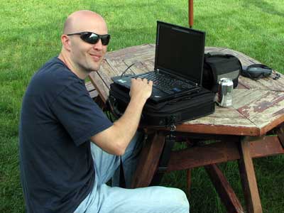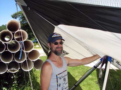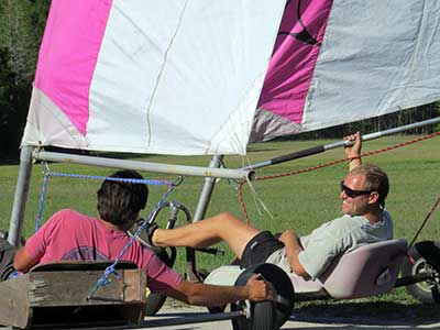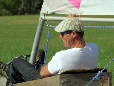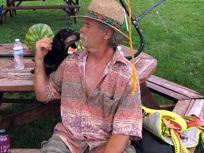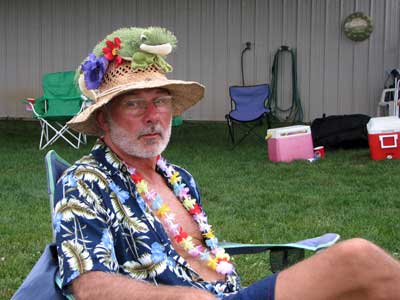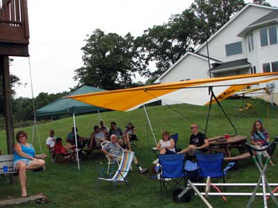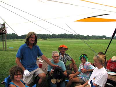 Cloud 9 Margaritowville - August 14, 2010 Although the big party was to happen on Saturday some pilots came in early and found weak conditions throughout the week but Friday the 13th proved to be the best day and many pilots had one hour flights. I did not arrive until Saturday morning and by then the sky was mostly high overcast. Some of us set up and took extended sled runs in the buoyant air. Tracy and Lisa had the place decorated for the event and it was great. Lots of pilots and their spouses and children played games and told many great stories of flights gone by. Most people had colorful costume attire and it was a festive occasion. The food was great and everyone had their fill. In the evening Tracy towed many of us up with the scooter tow system and that was a blast. |