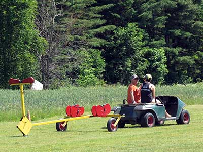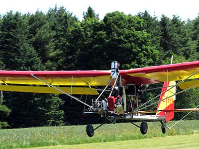 Cloud 9 - July 1 - 3, 2010 Left London Thursday at 9 am only to find a monster line up at the border crossing so I arrive at Cloud 9 field at 2 pm and Burney, Guido and Pat are setting up so I am not to late. I hurry to set up and we all wait till it looks better and Burney goes first and sticks so we all take a tow. It was a blue sky with wispy clouds and a cloud bank with the edge right over the field. Tracy pulled me into a nice thermal and I stuck with it for about a half hour and I got up to 4,300 feet and then went searching and getting down to 2,200 feet and then things started getting better. The lift started filling in as time went on and I was feeling good staying up over 3,000 and eventually getting up to 4,965 feet above the field. Guido and I thermalled together for fifteen minutes at 4,200 feet and finally Guido found some sink that I avoided and I continued to stay high when I saw a new pilot Trevor on his first soaring flight at about 4,200 feet. What a great feeling that must have been for him. Steve Djokic took of at about 6 pm and had a great soaring flight on his U-2 and we thermalled together for a half hour. For the last hour of my flight the lift was everywhere and abundant. New pilot Tom took a late flight and tried to land at the same time that I was landing at 90 degrees to me making a spot landing impossible. Friday was not so good but one hour flights were the normal. I had three flights - 50 m - 30 m - and 15minutes and got up to 3,600 feet once with Floyd and Chris. |