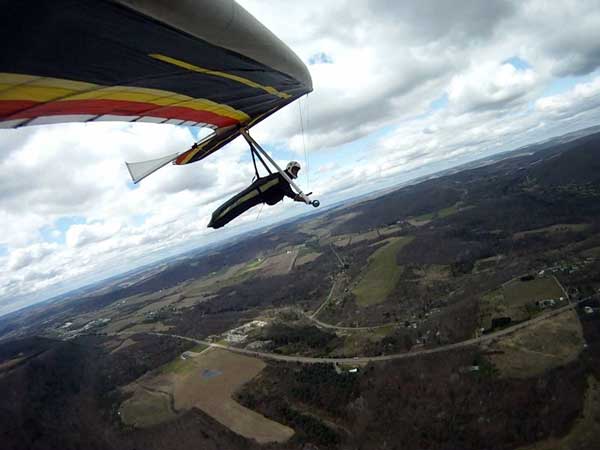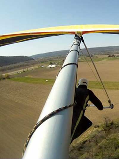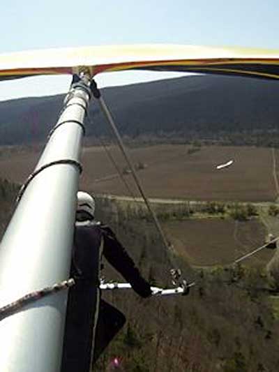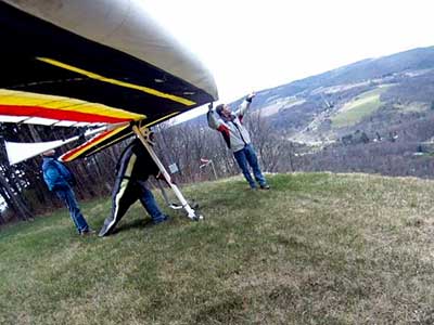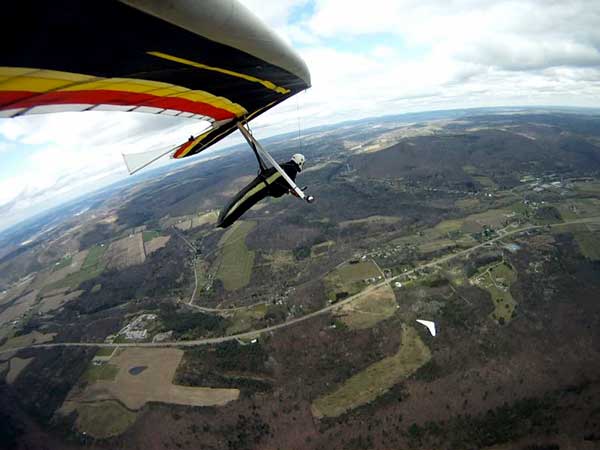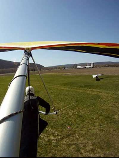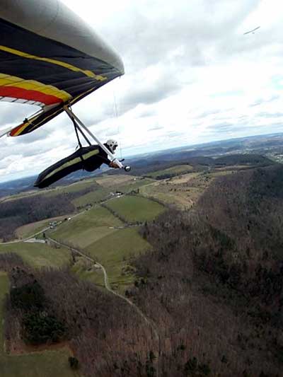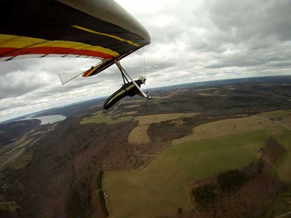 The Skydog Report Patrick picked me up in Rochester Wednesday after Moritz and I drove Oded's van back from Wallaby Ranch and we proceeded to Hammondsport and it turned out to be a wonderful day of lift to cloud base at 3,630 feet and Patrick did his longest flight to date at 3 hours and five minutes. My flight was 3 hours and 50 minutes and we all landed on top. Scott Wise had a 1 hour and 30 minute flight and landed in a new field on top just to the east of the regular field which is now ploughed up and soon to be planted. Ed Jowett landed on top with us and now the big story, Bill Vickery did a XC flight from H-Port and landed at Harris hill and later told me that he got up to 5 grand near Corning. Congrats Bill. We tried to fly Harris Hill on Friday but we all took extended sledders and Patrick had a Bald eagle flying twenty feet from his wingtip for almost a minute 400 feet above the landing field at Harris Hill. Wish that Patrick had the GoPro running. We all went home with big smiles. |