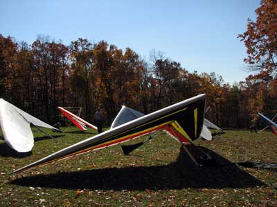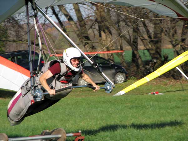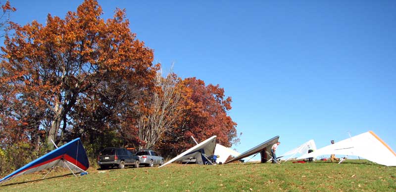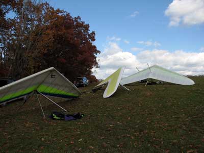 The Skydog Report Saturday October 20, 2012 We arrived at Dansville around 12:30 and met up with Patrick and Polly. We headed up top and found the new road into the take off and checked the wind and it was looking good so we lugged our gliders into take off. We set up our gliders and the rain started so we waited a half hour and the sun was shinning again. Patrick took a light cycle take off and just made it over the trees and popped up and was running the ridge at about 500 feet ato and gained to 1.000 feet and then the rain started showing in the clouds out front so Patrick landed and I followed after getting 1,515 feet ato. Patrick's flight was 29 minutes and mine was 25 minutes. My landing was one of the scariest I have ever had. On approach over the trees I turned along the tree line and got one tip kicked up and then after getting it straightened out I turned the other way and got kicked bad again the other way and finally got it straightened out and rolled in on my wheels in a cut corn field and the base bar caught and the nose came over and hit me in the back and that hurt real bad. Rick Hines came later and did a 38 minute flight and was looking real good as we watched from the landing area. Sunday we flew at Harris Hill and it was too windy for the most part but I took off in a lull but soon found that it was to bumpy for me so I landed after 30 minutes while Rick Hines lasted for 1 hour and fifty minutes. Jamie McGuire did his first flight in a year and Bill Vickery had a short one also. Monday great with lighter winds but still 20 degrees from the left at Harris and lots of us flew. I did 3 hours and five minutes up to 1,505 feet ato. Patrick took two flights and stayed aloft for 1 hour and 5 minutes getting up to 1,000 feet ato on his second attempt. John Bilsky was second off after Patrick and John stuck real well working through some heavy sink cycles. Bill Vickery had a nice one and flew with me for a while. Ed Jowett, Peter Hoy and Dan Walters also enjoyed the 70 degree day. Pretty warm day at the end of October. As of October 22, 2012 my total yearly airtime time 108H:36M I have surpassed my goal of 100 hours for 2012 mostly due to Maureen my wonderful wife encouraging me to go fly so often. |
