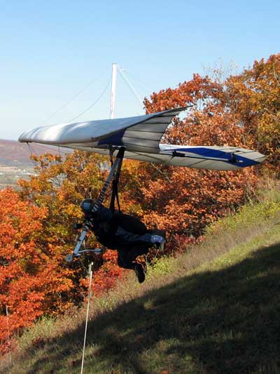 Rick Hines Wingin Close to the Tree Line at Dansville Landing Area - Fall Colors |