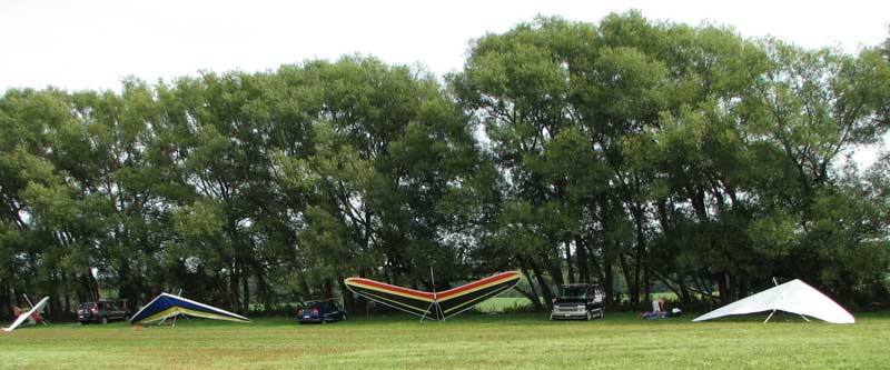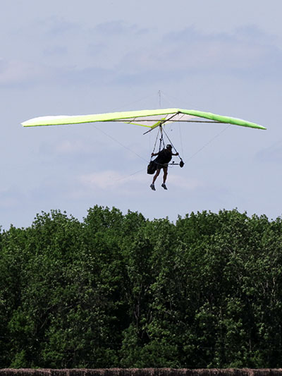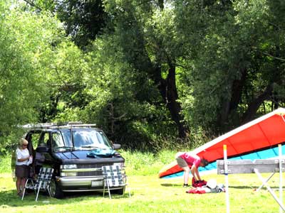 The Skydog Report July 3 - 7, 2012 Looking forward to a spectacular four day weekend in the Finger Lakes, Maureen and I headed out Thursday evening with a forecast of NW winds at 15 mph for at least three days and wsw the other day giving us great option for flying sites. Well Friday morning dawned sunny but the wind was over twenty mph so we thought maybe ewe could fly around 5 pm if the wind slowed at Harris Hill but no one was posting intentions so we id lots of walking though the glens in the are only to find out later that Jim Kolyinich was at Harris Hill at 6;30 and had a sledder. Wish that I had gone there at 5 pm. Oh well, next time. Saturday the wind did come down some and Dan Walter arranged to meet us at Harris again and when we got there the wind was coming fro the right on launch so we headed to Katie Did where the wind was straight in at 12 to 15 mph but Dan did not like the narrow landing area below now that crops were planted in the usual landing areas so again I had no one to fly with and passed the day even though Dan had offered to drive me up Katie Did. Thanks Dan. OK, here comes Sunday and the forecast is 15 mph wnw so to Harris hill we go and while I set up the wind picks up and finally at 3 pm it is screaming in at 30 mph so we wait and finally it calms down to 15 mph and I head to Launch and o one of my sloppiest launches in a long time mushing down and barely clearing the trees below to the right but then a push out and up I go and along the ridge gaining to about 300 feet for a while and then catching some thermals that took me to 760 feet over launch on occasion. Dan Walter went next and did very well getting over 1,200 ato and then Oded Kalir jumped into the evening air and also had a great flight and the last, Jim Kolynich to the sky getting well above for most of his flight. Ed Jowett had decided to break down before the wind slowed so he missed the good air. I had the longest flight of 2 hours and 10 minutes and enjoyed flying with my buddies from NY. Ed, I wish that you had se up again and flew with us. Monday the forecast was very good for Hammondsport and we tried to rustle up some pilots to fly with but had no luck so posted that I would fly and then we did the walk in the glen until noon and when e came back to the Launch at Hammondsport there was a glider set and low and behold who was it but our old friend and X pilot Jack Slocum. Jack was planning a XC trip to Maryland and launched at noon and had a mushy take off and then went zooming up and within ten minutes Jack was about 2 grand ato and he headed south as I was scrambling to set up so he I was with no one to fly with but I got into the air at 1:50 and flew until 4 pm for a 2 hour and 10 minute flight again. There were lots of ups and downs in my flight and I too a good one up to 5, 400 feet about an hour into my flight and bailed before I was sucked into a cloud that was about 500 feet above me. The lift was strong and the air was rasty for more than half of my flight so I was not very comfortable many times. About half way through the flight I saw that Linda Salamone showed up but she did not take off until after I landed and she flew for two hours and up to 4,500 feet. While I was packing up a few other pilots drove into launch but we had to get going to meet Oded and Family at there home so I am not sure who came later except that I heard that Moritz Wagner also flew. Oded read later that Jack Slocum had passed the one hundred mile mark and wow, what a flight. 2012 Airtime - 76-H 09 Mins. as of July 3, 2012 |