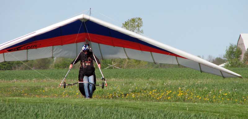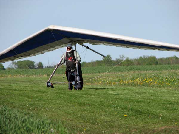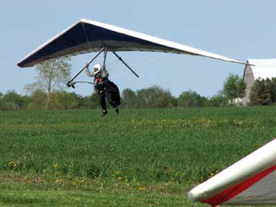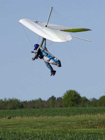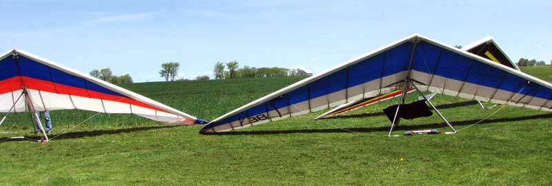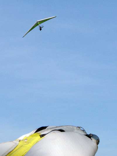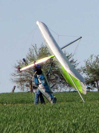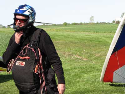The Skydog Report Wednesday May 23 Patrick and I drove to the Soga field and met Gilles, Ken, Rick, Don and Steve Younger up there and by the time we set up the sky was looking quite over developed. We all took flights lasting less that a half hour and enjoyed the day and by the evening the sun was coming though again. Oh well, better luck next time. |