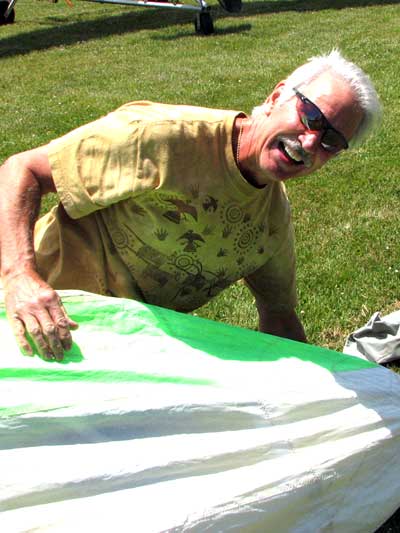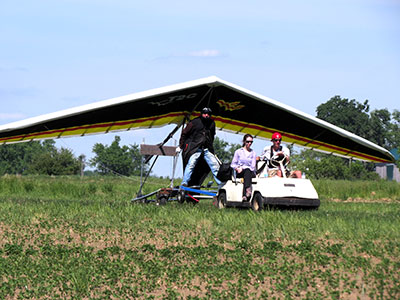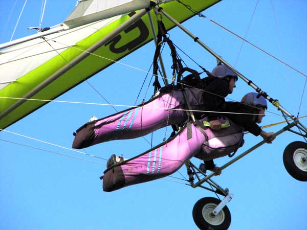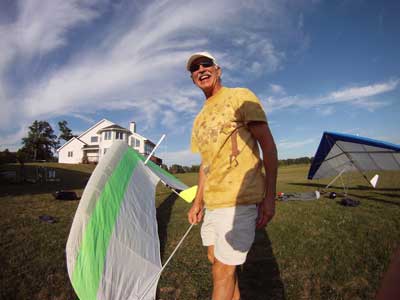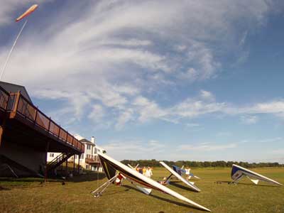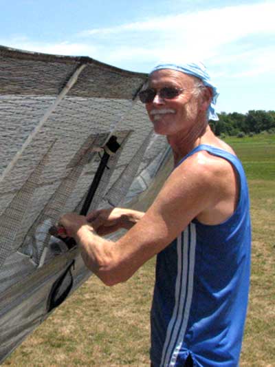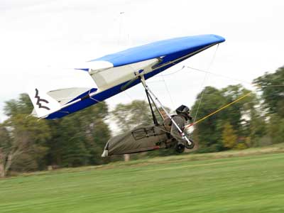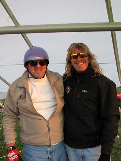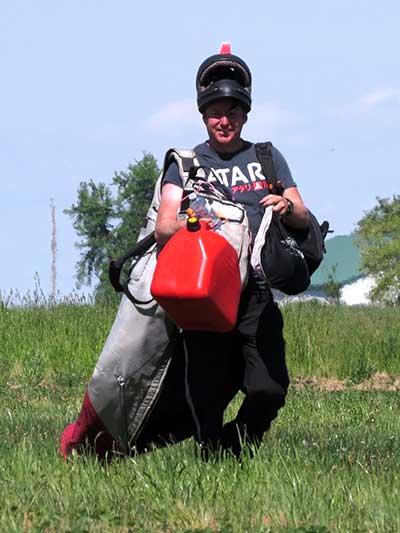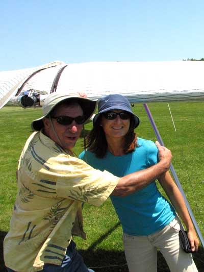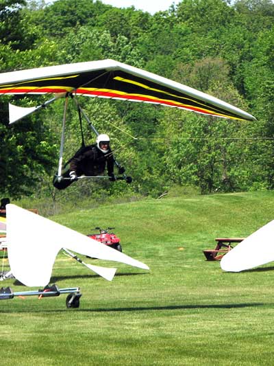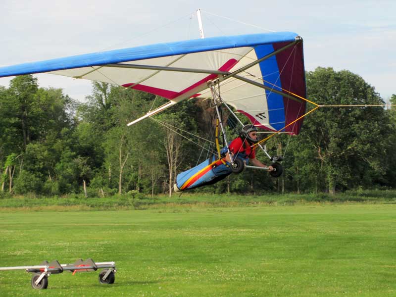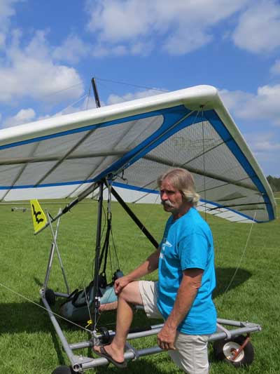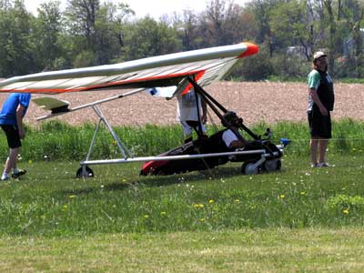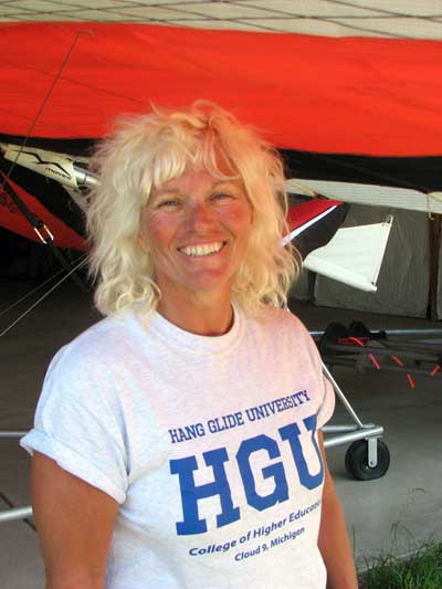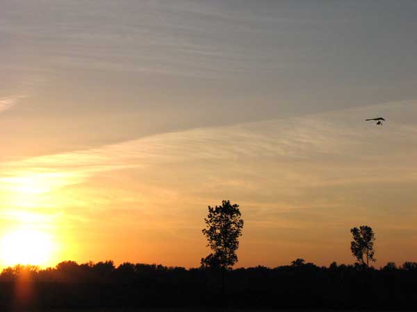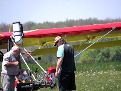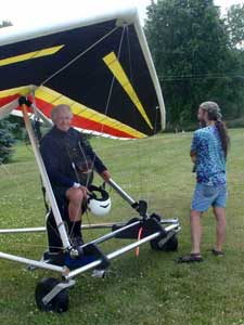 The Skydog Report Friday is a blue sky day and Scot Maue gets off first and I go next and I see scot getting down to a thousand feet while I get towed to 2,500 feet and Scot comes in under me and I use his thermal and we finally get up to 3 grand and go searching for more and while doing so I get down to 600 feet but get lucky and find a thermal that takes me out of the hole and back up to 3 grand again. Scot and I take turns getting above each other and after an hour and twenty minutes I see Trevor Glidersleeve and Chris Christophersen getting ready to launch and they both get airborne and Trevor joins Scot and I for a few minutes and then heads south and finally sinks out and then Chris joins me and we work some lift above a tractor that is working the field below and we both get above 3 grand and finally Chris heads south to the landing field and barely makes it into the north end of the field at Cloud 9 and then within five minutes I squeak in and make a perfect spot landing for a flight of 2 hours and 30 minutes. Scott did 2 hours and Trevor did about a half hour and Chris must have done 45 minutes. It was a really nice blue sky day that was very challenging. Saturday, another blue sky day and Jim and Marzena Gibson pull in around 11 am on their way home from Virginia. I took three flights and finally on the last one at 4:30 I got a 1 hour and 13 minute flight up to 3,995 feet along with a 13 minute and a 26 minute flights. There were lots of pilots and a few did well but the sink areas were pretty big so lots of sledders. Mark Bolt visited for the day riding his new Kawasaki 650. Pilots for today were Brian Deimling, Trevor Glidersleeve, Chris Bratsis, Chris Christopersen, Scot Maue, Mark Dugan, Lisa Colletti and myself and then there were the tandems in the evening. Sunday was an interesting day with lots of wind. At noon the wind was 14 mph gusting to 18 or more. At 2 pm Scot Maue got on a cart and tried the air and was soon on the ground. Unfortunately I jumped in right behind Scot and only lasted 14 minutes searching over a freshly ploughed field with no luck. When I landed Scot was getting his Exxtacy on a cart again and I wondered why. When Scot was towed up this time he headed toward some haze domes that were forming to the west of the field and sure enough Scot got up well over 4,000 feet so I got ready and Tracy towed me up over the field and I headed west to the domes and sure enough there was great lift and the higher I got the faster the climbs right up to 6,000 feet. Scot later said that he registered 700 fpm. I lost sight of Scot immediately but worked the lift for forty minutes and finally saw someone else take off. I worked lift over the fields to the northeast of Cloud 9 and noticed Mark Dugan and another glider flying way below. I took the lift from a tractor working a field and took it back to the north real close to hyw. 96 and finally got up to 6,745 feet ato. Feeling like I was getting a long ways away from the landing area, I pulled the bar in and flew fast toward Cloud 9 to the south likely flying through lift that I did not detect. I got back to the field with 1,400 feet and searched and lost to a good landing twenty feet from the spot. Trevor and Scot were there and I realized that about five others were in the air still and as they landed a half hour later it was evident that there was still lots of lift at six pm. Mark Dugan later old me that he finally got up to over 6 grand and that he was north of Fowlerville and that he had seen me way below as I was racing back to Cloud 9 Field west. Sure do wish that I had slowed down and caught more lift which may have extended my flight time by almost an hour. Chris Bratsis dropped in last and was excited with his great flight. My flight time was 1 hour and 38 minutes and most pilots got around two hours. Pilots for today were Brian Deimling, Trevor Glidersleeve, Chris Bratsis, Chris Christopersen, Jim Dedes, Scot Maue, Mark Dugan, and myself Dan Maslanik (Guido) helped launch on both days and Tracy Tillman towed solos on all three days and Lisa towed the tandems Friday and Saturday. |