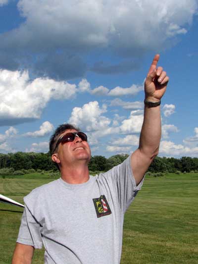 The Skydog Report Saturday was an awesome day at Cloud 9 with about fifteen pilots enjoying great lift to cloud base. I took off third behind Jim Dedes and Scot Maue and took my first thermal to 6,000 feet ato. From there I could see Scot circling at 3 grand for a long time and then Mark Dugan and Casey Just joined Scot and they worked together for about twenty minutes not gaining a lot. I saw a pilot flying a WW Falcon way up at cloud base and later found out that it was a new pilot, Brian Ridder and wow was he ever doing well. A half hour later I saw Mark Dugan coming up out of nowhere and we played together for five minutes and then Mark took off to the east and my original plan was to keep close to Mark but somehow I decided that I should rather follow Chris Bratsis who by then was close by so we turned at five grand for a while and we got up to six grand and to my surprise Chris was speeding off to the west so I followed Chris and he took me west past Hyw. 52 and under a great street at 5,200 feet and it was easy to get up to seven grand with Chris and finally I got up o 7,360 feet ato and Chris was close by. We both watched as a large airliner (727) passed by about a thousand feet to our southwest at our altitude and then twenty minutes later another smaller jet took the same route maybe going to Lansing. Cloud base was around seven grand and I was able to slide up the side of one getting video along the way. Next Chris headed off to the southeast and I followed but then when we got closed to Cloud 9 West Chris headed off to the south and being that it was getting late like six pm. I thought that I would be safe and stay closer to the landing field and finally touched down just three feet short of the target Man, I thought I had that one for three in a row. Chris came in a half hour after me with a great landing. Chris Bratsis report below. My flight was 3 hours and 45 minutes and up to 7,360 feet. I took video so don't have photos. My 2012 Airtime is 71 hours and 49 minutes as of June 25, 2012 |