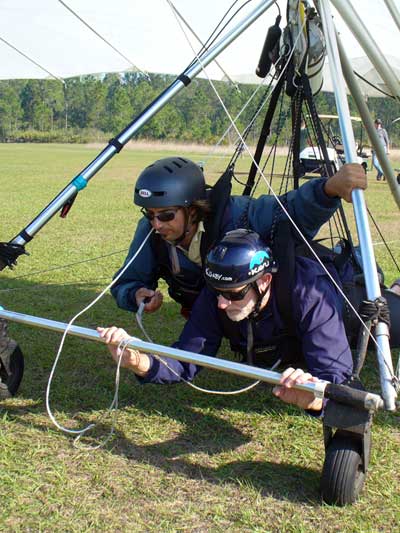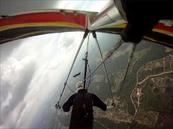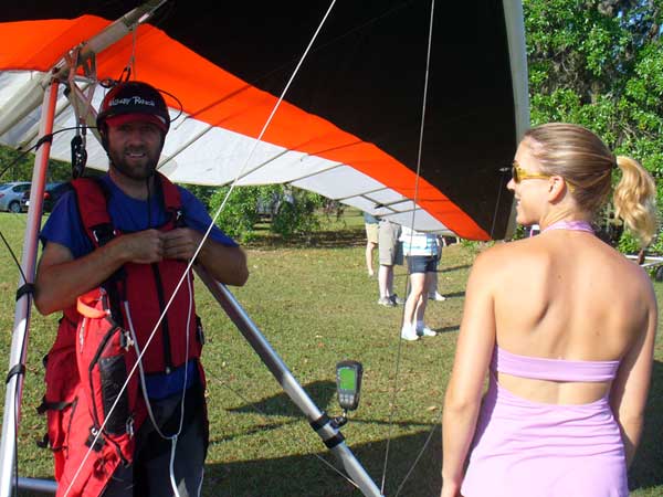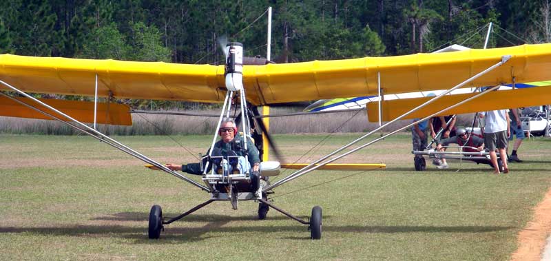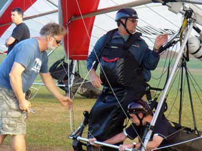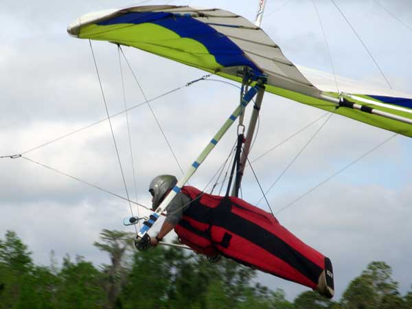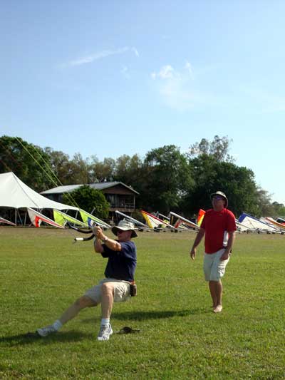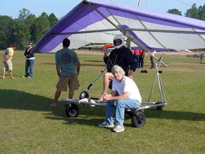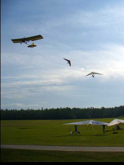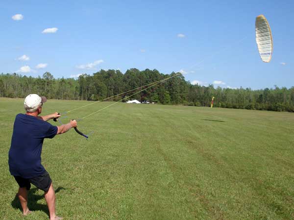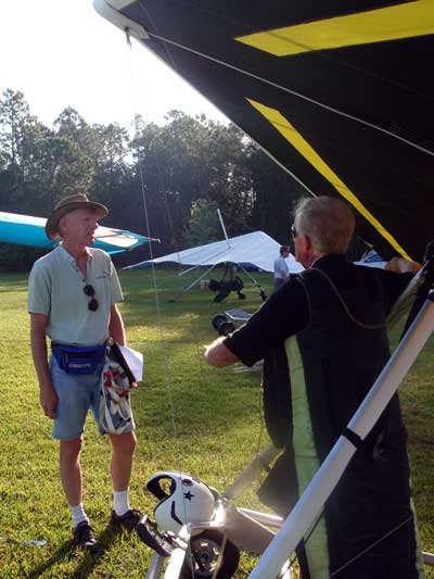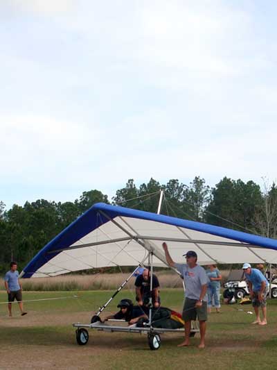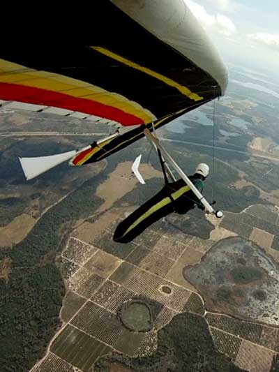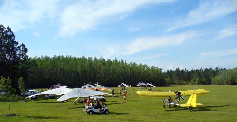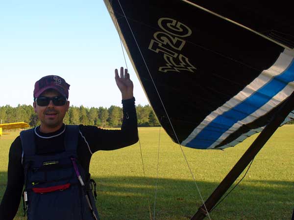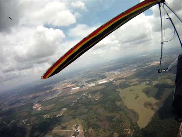 The Skydog Report Sunday March 30, 2012 Wow!! Sunday is super up to base again many times and flying all over the place. Picked up my son Bobby at the Orlando airport and Bobby has not seen me fly in 35 years so he was impressed with the great conditions. I got off second while the first pilot sunk out and later came up again. My first twenty minutes at two PM with the clouds being a little far away from the Ranch but Paul towed me over to them near Hyw. # 4 and I got a good one to 6,075 feet with the wind being 17 mph and from there the lift filled in and the rest of the day was a blast with about ten of us having some great close thermalling and I have the video to prove it. The wind dropped off throughout my 3 hour and 32 minute flight to about 8 miles per hour at 5 pm. Later in my flight I was getting down to 2,500 feet and then noticed a pilot a way off to the west near Dean Still road so I cruised over him and I was at 2,200 feet while George was down at 1,400 feet and I was sure that he would not make it back to the Ranch but George found a beep and slowly worked it up to cloud base and I followed. I was ready to land at four hours while watching two others land when I saw a buzzard over the warehouses so I cruised back there along with four other buzzards and we took a good one to cloud base again at 5 pm and six grand. It was an exciting flight. You All get on down here for Wills Wing Demo Days and the weather is great. See Ya, Bob |