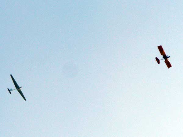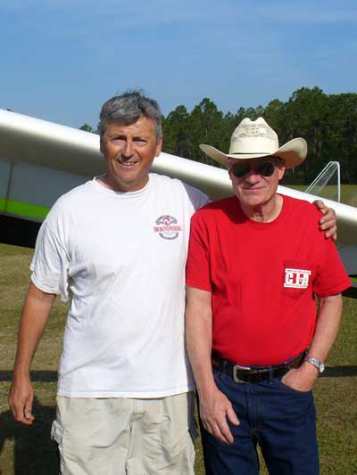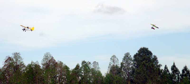 The Skydog Report Monday April 2nd is another great day at Wallaby and I get off after about five others and Paul puts me in a decent thermal and I stay with it ten minutes and I watch all but two others sink out and the three of us boat around always searching for something better and usually staying around three grand. The sky was blue with cumulous far away so we struggled in the blue using one another to spot lift. Martin from the Nederland gets in one with me an we take it up to 4,600 feet. Bob Roth comes up with his Atos Vx and stays to the north for a while at about 3 grand while I stay to the south of the Ranch near the clover leaf and get up to 4,600 a few times. After 90 minutes I get down to 1,400 feet and most others are landing when I find a small thermal half way to the warehouses and it grows so that I can drift with the buzzards below me up to 5,530 feet. I decided to land after two hours and one minute and my son Bobby and I went to the R/c Helicopter field and watched some professional heli pilots do amazing tricks. Another wonderful day in Florida. |