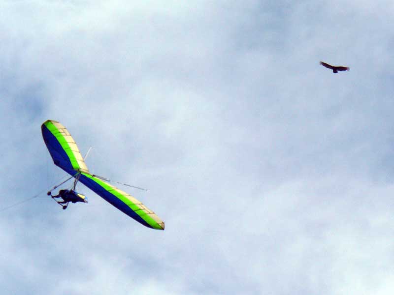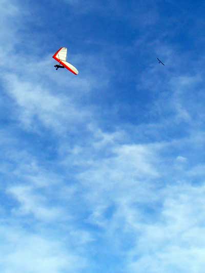 The Skydog Report Thursday March 29, 2012 Sure enough, it was a stellar day and Fin from Norway took off first then me and Paul dropped me in a good thermal at 1,700 feet and I immediately took it to cloud base at 5,300 feet and I had to work to stay out of the cloud. Cruising around was easy with lots of lift in most areas. Dave and Celesta Alford from my home site in Michigan are here and Dave had a great day also along with about twenty other pilots. George, a local pilot loaned me a pair of gloves and I sure needed them as it was cold at base but at 3,000 feet the temperature was comfortable. I flew with the GoPro mounted on my keel today and I am sure that I have lots of great video and I will get to it as soon as possible. After two hours there was a big flush and all but three of us were left in the air, Scott, Fin and myself and at that point I got down to 1,100 feet but eventually worked a small thermal that grew into a monster that took me to 5,835 feet and my total air time was 3 hours and 40 minutes. A really wonderful day and that's my first two being great on this trip. |