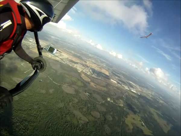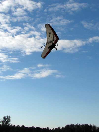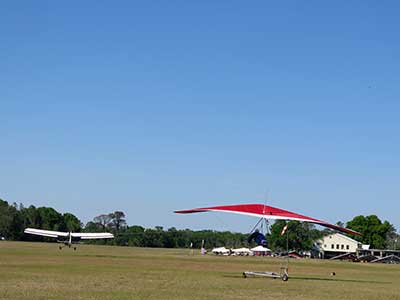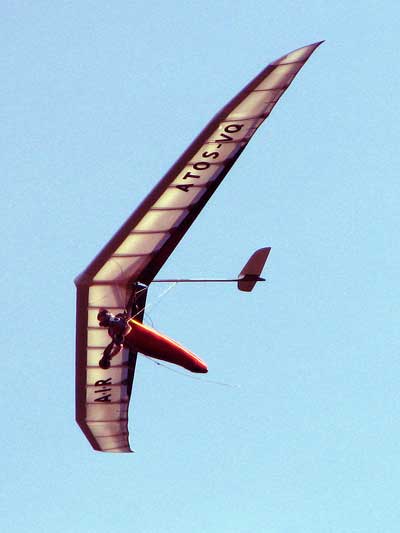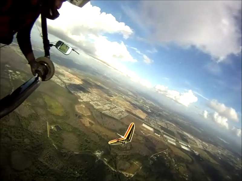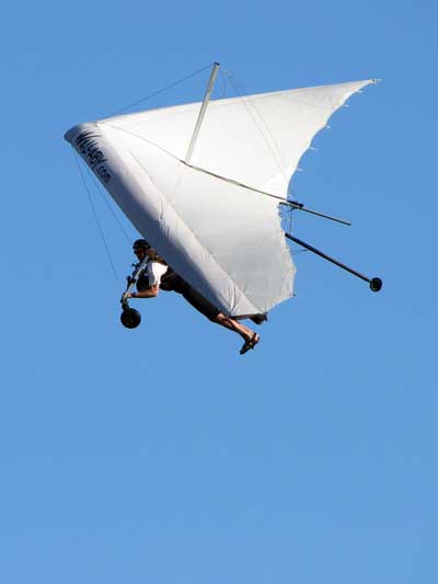 The Skydog Report We arrived at Wallaby Monday morning to a high overcast day and moved into Steve Arndt's cottage. After noon we set up our T-2 and U-2 and the sun came out around 2 pm so we both took two flights without much lift so 16 minute fights. Maybe Tuesday will be better. 30 Minutes total for me today. Oded will likely set up his new Atos VQ Tuesday morning. Tuesday starts out clear skies and Oded sets up his new Atos VQ and we get ready to fly. Oded is going to fly his U-2 today just to get into the swing of things. At 8 am there are twenty tandems and my old friend John Armstrong takes a tandem flight with Malcolm and plans to get back into flying after a sixteen year lay off. Around 1 o'clock we get out to the take off line and Scott L, and Rick Bremmer are first in line with me hot on their heels. Another eight pilots behind us and away we go. Scott and Rick look to be doing OK and Fay Barber puts me into a good thermal and I work it to over 3 grand and see that Rick and Scott are landing but I get lucky enough to survive and I get into another good one and take it up to 4,300 and cruise around trying to stay in the lift while the others are getting towed up again. Oded gets up and hits a flush cycle when I am lucky enough to stay high. Oded gets another tow and has a nice 40 minute flight. Rick on his GhostBuster is doing well and Scott is keeping with me at cloudbase. I did not have the camera on today and there were lots of close encounters to be filmed so maybe on Wednesday I will take the GoPro up. I had a lucky day with a single tow and 4,300 feet ato and 1 hour and 33 minutes of air time satisfying me after the long drive on Sunday. Off to the movies in the evening and to bed to rest for a spectacular Wednesday. Wednesday starts out with the Hot Air Balloons blasting into the sky at seven AM and we get up and get ready for another great day. We get in line a little earlier today like 12:30 and Rick takes off first and Scott next and then me. Today we have twelve solo pilots and what a nice 82 degree day with great cummies, Paul puts me into a good one and I am stoked and get up real nice with 400 fpm climbs and I finally get up to 4,300 feet at base and I cruise along the edges above the bottom of the cloud. Next I see Scott coming in for a look at the GoPro and we fly together for a while and I see Rick staying a grand below us which is unusual. I am thermalling with Jason Williams who always does great and we have about ten minutes together and then I see Jason heading North toward Quest so I go back over Wallaby Ranch and join the others who are getting quite low. Well sure enough I start sinking out and am what I think to be the last one to land but Oh No, Justin is still in the air and heading back to Wallaby and he continues to stay aloft. I get in line again Rick in front of me and Scott after me and again Paul puts me into a good one at 2 grand and I work it up to 4 grand in ten minutes and play around the edges of the fluffies. Scott joins me and I expect that I have some good shots of him. I see Rick hanging around a grand below us and I wonder why as he is usually right with me. NEWS FLASH -- Oded took two flights on his Atos VQ this morning and simply loves it and this afternoon Oded takes his first thermal flight on the VQ. Oded got off a little late so only he stayed aloft for 35 minutes but enjoyed the thermal experience with his beautiful VQ. After 45 minutes on this second flight things start to mellow out and finally Scott and I are duelling for last to land and in the end I won today as we made passes at 500 feet above the tree line in some small bubbles. I landed with 53 minutes of pure enjoyment and a best gain of 4,700 feet. OK so now where is that magician Rick Bremmer. Sure enough he slides in about an hour later and says that he found some small bubbles to the west of Wallaby after we had landed. Rick usually does that! as many of you know I almost always land on my wheels and today just for out landing practice I did a stand up landing and it looks like I can still do it and on Film too. Check my Youtube videos at cdnskydog. Ok so we have great flying and you all should be here. Oded says that the VQ stands for very Cute. Ha, Ha. Thursday and another clear morning and Oded is anxious to fly his VQ again and takes one morning flight and two afternoon flights. The sky did not hold much promise so we started around 1:30 and I was off first with ten pilots behind me. Paul took me to some lift and I pinned off at 2,300 feet and fumbled in the light lift and after about a half hour I was up to 2,800 feet over the sand pits but no one was with me and I noticed that most pilots were much farther south near the cloverleaf. I waddled in and out of light lift and finally decided to go south and see what I could find and as I was travelling I noticed that the other glider that were maybe 500 feet higher than me were coming north and over my head and Oded was now at 2,800 and I was down to 1,600 feet and from there it was mellowing out and I landed for a 53 minute flight. Oded and the others landed about twenty minutes after me and Oded was elated with his one hour flight. We had a great Wallaby Ranch lunch and Oded says, lets go for another flight and away the two of us went. I asked Oded to go first so that I could try to get some video from the air of him on his new glider. By the time I was towed to 2,500 feet Oded was down to about 1,200 feet so I wanged the T-2 down over Oded and got some good shots of his VQ and I will get it onto Youtube ASAP. Oded logged 20 minutes and I got 14 minutes on this late day flight. Friday, clear skies again and warm like 65 F. in the morning and going to 82 F. this afternoon but at noon the wind is about 12 - 15 mph. SPECIAL EVENT. This morning Oded offered to let me fly his new Atos VQ and I accepted. I was a little nervous as I had never flown a rigid wing but all went well and I had the VQ up to 50 mph and down to