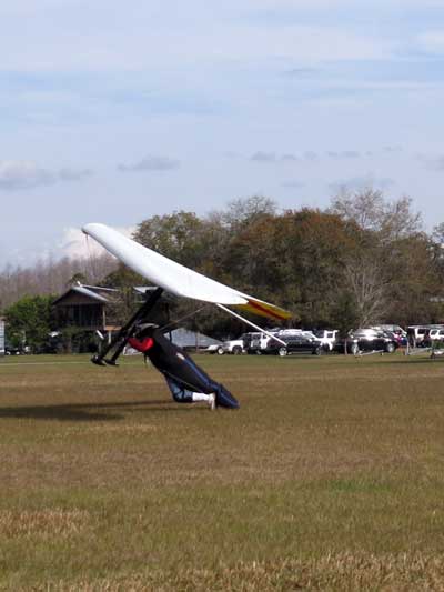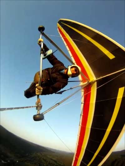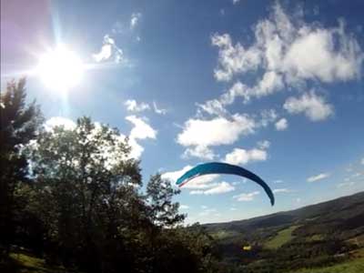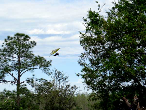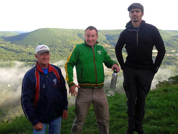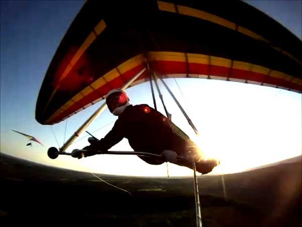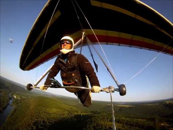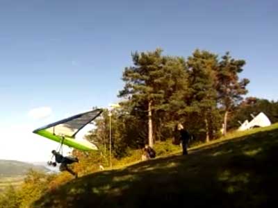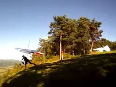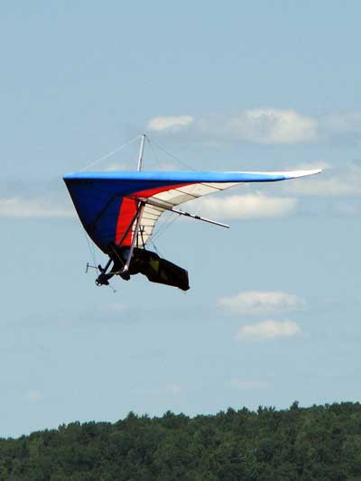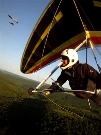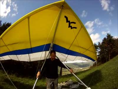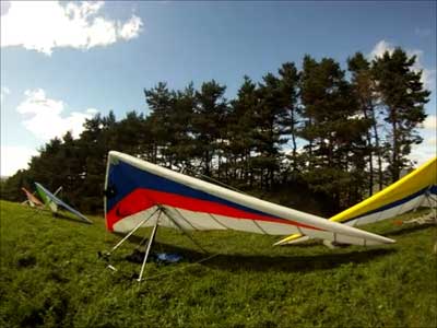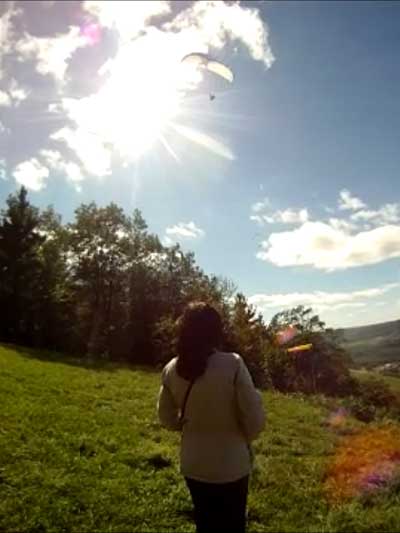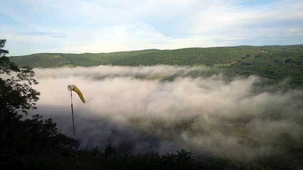 The Skydog Report Thursday evening September 12, 2013 Patrick O'Donnell and I drive to Hammondsport NY for the weekend. We wake Friday morning to heavy rain and by 3 pm the sky breaks up a little and we decide to try our luck at soaring Hammondsport. Patrick gets off first in a nice light cycle and works his way up above launch and now I get ready to launch by myself. This works out well as the wind is light like 8 mph and I run off and gradually after three passes I am above the ridge by a hundred feet. We both get up to 450 feet above and a cloud moves across in our path and it starts to rain lightly again and Patrick takes off toward the church landing field and I watch him land nicely. Okay so it is still sprinkling and I see another cloud moving in at my level so I work my way up to 300 feet above the ridge and scoot back over the top for a top landing in Rick's field and I have a real nice landing on my wheels. Now I walk back to the van parked at launch and go get Patrick and we come back up and Patrick starts carrying my T-2 over the hill to the launch area so that I might try again but when we reach launch this time the rain starts again so I give up and we go get dried out in the cabin with the wood stove. Patrick had a 26 minute flight and mine was only 13 minutes. Later Friday evening we welcome our new friends Erik and Charlie from back home and get ready for another day. Saturday morning starts out cloudy again but the forecast says clearing by noon so we get set up and about seven Paraglider pilots show up and they take a few tries at soaring but most land within a half hour but two of them get more than an hour each and a grand above. Jordan Lordanov likely was one of them. New guy, Keawe Wong had a spectacular flight on his paraglider when he gained over a grand and floated around while others were sinking out early. Matt Caladine arrived around 1:30 and showed us how well his new paraglider could do. He was high man. The sun shows up around two o'clock the four of us plus another three from Rochester get our hang gliders to launch and we try again. Erik went first and had a sledder and bent a downtube on landing and then Marc Sanchdev took a sledder and then Messhia went and stayed aloft for 1 hr - 30 minutes. Todd Shennan had a great flight of over an hour and Charlie and I took short flights of 23 minutes and then we came back up and Charlie had a 1 hr - 16 minute flight and I stayed up 1 hour and 38 minutes and we were up to 500 feet ato. Charlie and I had some very close encounters and with the sun getting low it was hard to see the other gliders at times. On my longer flight Patrick offered to let me fly his Sport 2 and it flies really nicely. Charlie landed on top and I landed at the church at the bottom. We all went to the Chinese Bin Bin for supper with Karl and Kartin and Jordan and Lana and it was a buffet feast with great flying talk. Sunday we met Karl and Katrin at Bristol Mountain and we replaced Erik's downtube that Karin brought and then carried in to launch to find that the wind was pretty light and crossing from the left. Soon Karl took his beautiful paraglider up and had a nice flight about three hundred feet above launch and then Jordan took off for a sledder and then it was my turn. I gave it what I thought was a good run but my right wing stalled and I slid sideways and almost got it straightened out but caught a branch and slowly spun into the trees with a soft landing in the trees. Katrin, Patrick, Erik, Charlie and Karl came to my rescue and we got my T-2 out of the trees and up the face in about 90 minutes. Next Patrick, Katrin, Charlie and Erik all got off the mountain safely and had nice sledders. Thanks to all of you who helped get my glider up that very steep ravine. We all went to dinner close by and headed home. Erik and Charlie had a great first weekend in the Finger Lakes. |