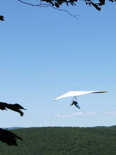 The Skydog Report Wednesday June 19, 2013 we were in the Finger Lakes region of New York and the wind was forecast to be north with a bit of east so we headed to Indian Cliffs. we met Ed Jowett and Bill Vicary in the landing area and loaded our van and went to the top. The three of us set up by one pm and Bill and Ed gave it a try in what appeared to be a good cycle. George Adams had arrived just after us and took off after Ed and Bill. Bill got up to over a thousand feet and Ed got pretty high too but after the cycle stopped the three were forced to land. I elected to wait for shorter lulls between the cycles and as it tuned out we all waited until after six when the breeze stated to fill in. Linda Salamone, Peter Hoy, Jimmy Kolynich and Ron Kiteridge and Matt Calladine all showed up later and we all got off in a nice wonder wind. Bill had left his glider in the landing area so he took a ride with Matt on his Paraglider and had a great flight. Linda got highest at over 2,100 feet on a ridge just a bit to the right of take off that face more into the wind. I had a 1 hour and 38 minute flight and got up to 1,495 feet. The evening wonder wind was sweet but it sure was a long wait for it to turn on. |