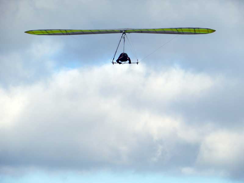 The Skydog Report Sunday July 21, 2013 Steve Bellerby had predicted a great day of lift and he was right on. When I arrived at noon the sky was full of cummies and there were about six gliders being set up. Mark Dowsett had Patrick's Sport II repaired and did a test flight on it and went XC. Steve Bellerby arrived an hour after me and we were ready to fly and I took the first tow at 1:30 and sham Steve Younger pulled me right into a boomer and I took it up to base at 3,700 feet and it was strong so I left it and watched as Steve Bellerby was lifted to 2,000 feet and my intention was to wait for Steve to pin off and then stick to his tail like glue as Steve always does extremely well and usually has the longest flights of the day. I had launched with only a t-shirt and shorts because the past week had be very hot like 95 F. and I thought lightly dressed would be OK but no, I was freezing at base. Anyways, I got thinking (always a bad plan for me) that if I were to move to one cloud upwind that I may have an advantage trying o stay with Steve and of coarse that did not work out for me as when I drove upwind I sunk like a rock and by the time I tried to come back to the original lift I was to low and forced to land and re-launch. The only problem there was now I was at the back of a ten glider line up and it took me 2 hours to get pulled up again. This time the lift did not seem quite as strong but after fifteen minutes I found a good one and took it up to over four grand and went searching again getting down to 1,000 feet ato. but then over the SOGA launch filed I found a nice little one that grew into a boomer up to 4,500 where I came across Andrew Starkhov on his hot T2-C and we thermalled together trading places and challenging the six sailplanes from next door and it was fun getting above them and waving to them and we both hit just over 5,000 feet. All this time I was searching for Steve Bellerby but never did see him. After I landed at six PM we looked up and there they both were (Andrew and Steve) heading in over the field and within 20 minutes they were both on the ground. Steve as usual had the flight of the day with yet another five hour flight and Andrew did a personal best with four hours and I did the two flights one at 27 minutes and the second at 2 hours and 15 minutes. There were more than 12 pilots there some of which I don't remember their names but all had a great time. Terry Davidson had a release on take off and landed hard cutting his hand which needed stitches. Les Tapol made good progress on getting one of the new carts fitted with a rear keel mount. No Photos Today |
