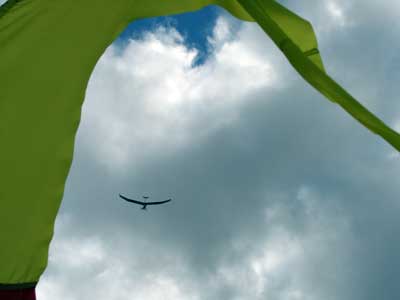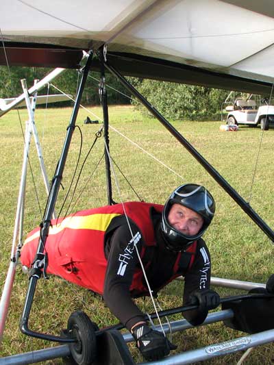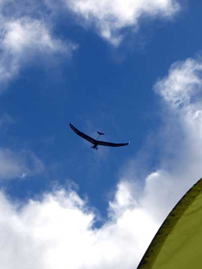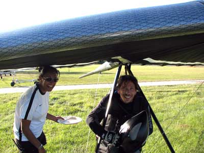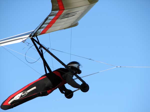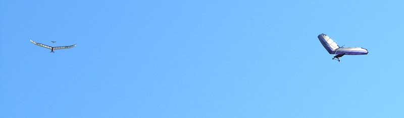 The Skydog Report Tuesday Starts out Sunny and Oded and JK take 8 am flights. JK gets up first and after release he is parked in the 20 - 25 mph wind as Oded gets towed up. They both have smooth but windy flights and JK is really enjoying his new rigid wing. We use the rest of the day shopping and visiting and the rain starts around noon. Off to the movies we go. |