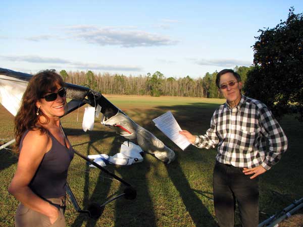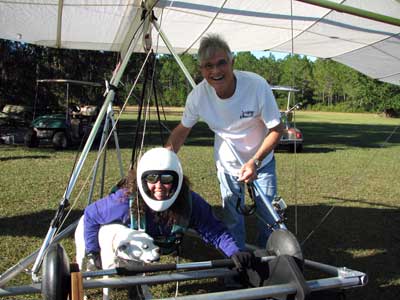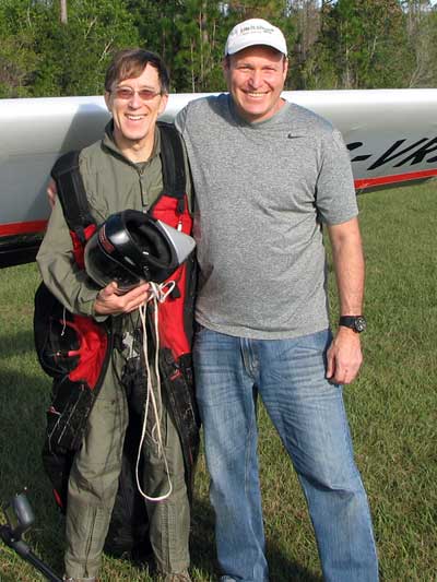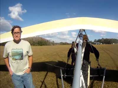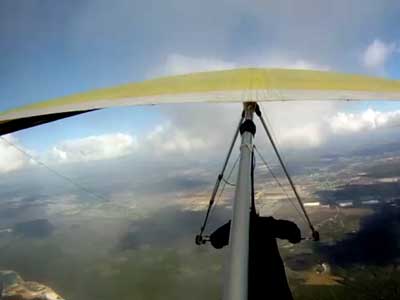 The Skydog Report Sunday is cloudy and windy so we go to Cocoa Beach where I would like to windsurf but when we get there the wind direction is not proper so we film about twenty kite boarders slipping along the water on the Banana river. We are going to try the Florida Ridge on Monday. Monday morning Oded and I take JK to the airport to catch his flight home to Elmira NY and then we head to the Florida Ridge flight park and the forecast is for sunny skies ad light winds. Oded and I arrive at the Ridge and there are tandems going up so we set up our gliders and get ready to fly. Oded takes off first at 1:30 and plays in some light and Derrick tows me up over the canal where we find some 200 fpm lift and drops me off there. I work the light stuff for a few minutes and Oded joins me and we circle together a few turns gaining up to 3,200 feet. Oded leaves and heads for another cloud that looks better and he is rewarded with some good lift and finally gets up to 4,100 feet and Oded stays aloft for 1 hour and 45 minutes. I don't find much and land after 45 minutes and get another tow and this time Derrick takes me up to 4,800 feet well above the clouds and as I am turning I see a wonderful Glory circle on the cloud beside me so I fly straight into the circle and it becomes very large with a shadow of my glider in the center. I fly father from the cloud and come back again to see the Glory and shadow again. To bad that I did not have a camera with me for this flight. After 30 minutes I am on the ground again and go up again for a sweet sled ride with wingees for a twenty minute flight. Oded takes a second flight that is only a 26 minute sledder. We pack up our gliders finishing in the dark and head back to Wallaby with stories of another wonderful day of flying. Wednesday there is no flying but sunny and windy and we are flying home on Wednesday so that is it for now. |
