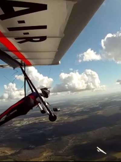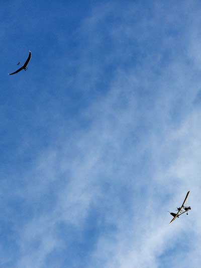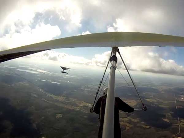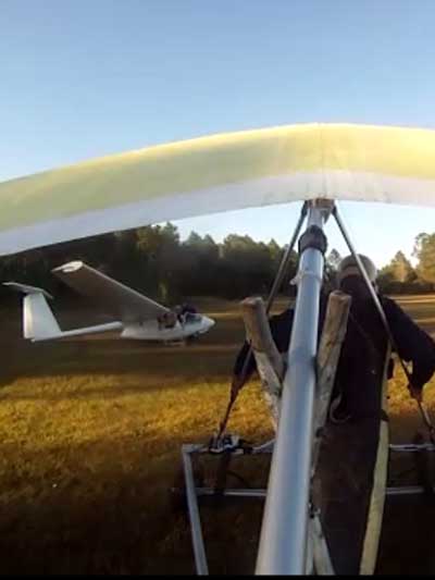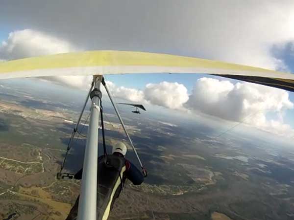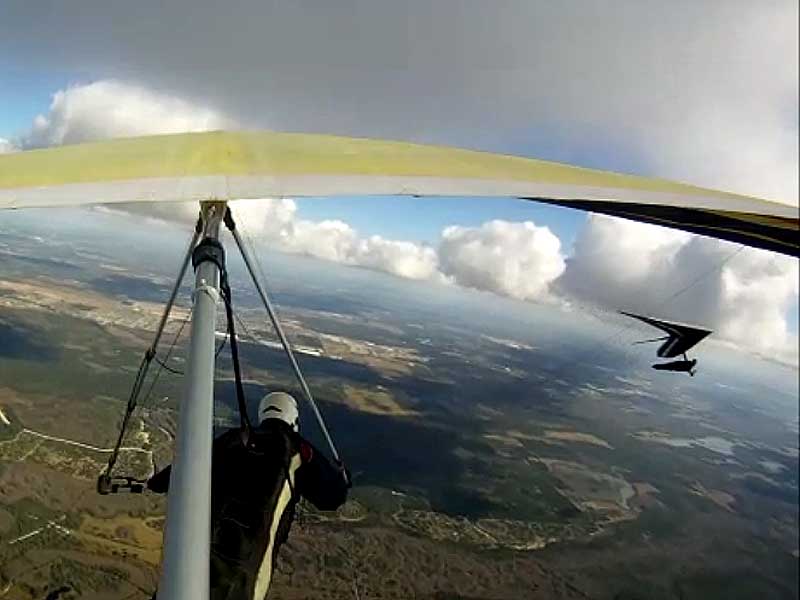 The JK Report Saturday was great and I had a good tow by Paul to 2.4 K, released, found nothing and then zoomed south over Wallaby to thermal with Rick Bremmer flying his Aeros Phantom, Linda, and Don Ludlow. Got to 3,366 feet with great Go Pro footage with Bob's Wolfi camera mount on the wing. Saw Mick Robson turning over Wallaby in his sailplane and speeded over to him as he eventually climbed up to me and headed NE to join Mitch over the housing development by route 27. The lift was weak unless you were under a dark cummie. Oded was about 3 miles to the SW in zero sink under a big dark cumulus cloud. I 'm still getting use to the Atos and not using it to its full potential yet. So I'm staying close to Wallaby. Baby steps. Tommy Nejame gave me some pointers after he landed. After a nice landing Oded and I had lunch. Bob, Oded and I went up late in the day. Got towed to 4.2 K which gave me a spectacular 30 minute cruise with the sun low on the horizon just as Mitch, Tommy and Mick came into land after 3-4 hour flights. Did I mention the temperature was about 80 degrees. It was a real fun day. |