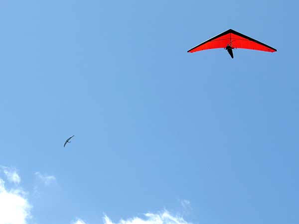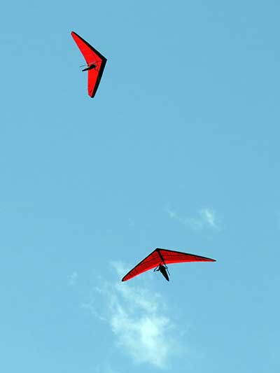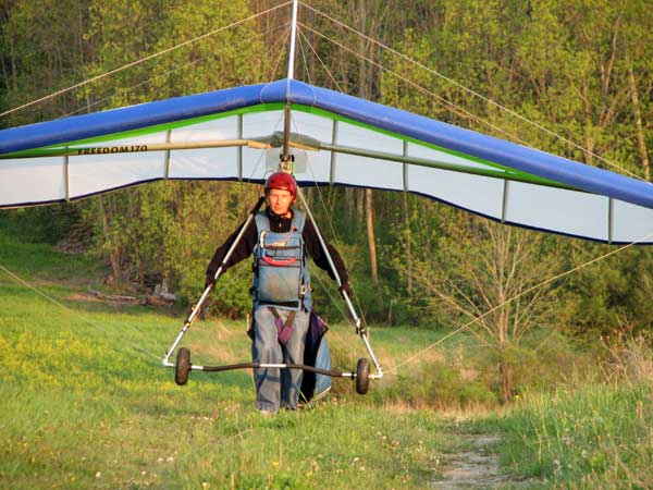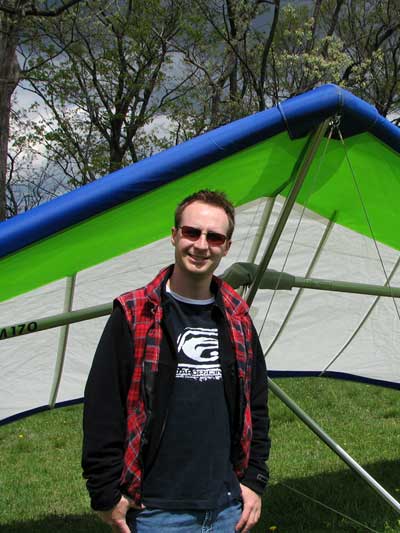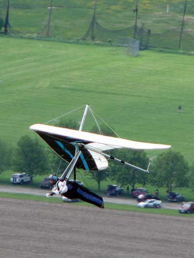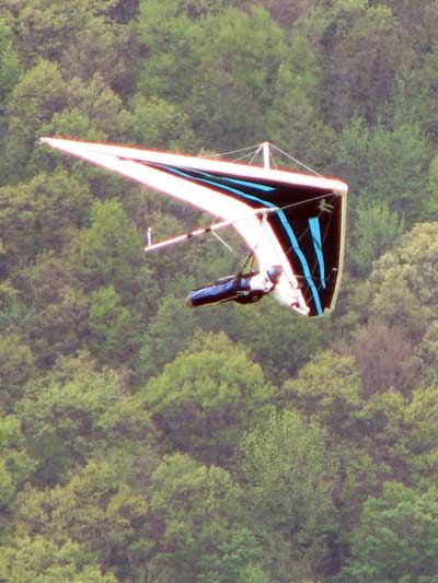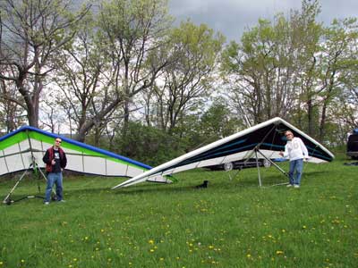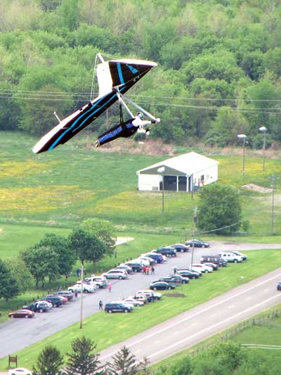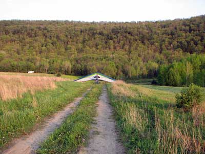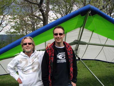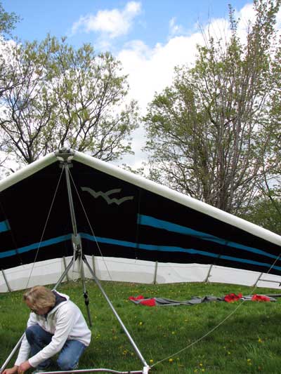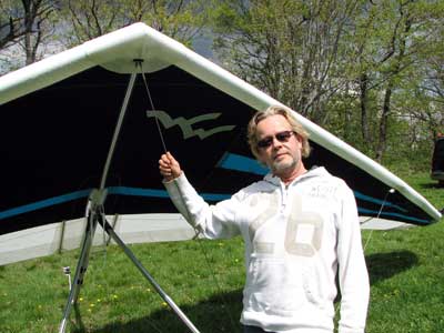 The Skydog Report Saturday May 17th Patrick O'Donnell and myself visited the Finger Lakes and camped at Hammondsport, NY. We drove to Harris Hill first arriving there at 10:30 Am and the wind in the landing are looked good but e had to go for gas first and phone the airport. When we got to launch at 12:30 the wind had subsided to about 4 mph so Patrick set up his new wills Wing Sport 2 - 135 Sq. foot glider. We waited a while but the wind never picked up to a soaring speed so Patrick finally took off for a sledder for his first flight on the new glider and it all worked out well and Patrick landed in the large grassy field where we usually land. we headed back to H-Port to set up camp and found a half dozen paraglider pilots in the air floating around above launch. Patrick was eager to set up his big tent so we did not fly Saturday evening. Sunday morning we checked the forecast and set out for Harris Hill again and this time Eric Coverdale joined us and e arrived around 12 noon and again the wind was light so Eric and Patrick set up and waited. Finally around two pm there was a few times when the wind was coming in at 8 mph so Patrick had a go at it and sunk out. Eric waited a half hour and took a cycle and went up when he took off and then Eric flew the ridge for a couple of minutes and then I saw him do a 360 and then another 180 heading in towards the hill and the last I saw Eric was stalling into the trees 300 feet below launch as far as I could tell from the launch area. I drove to the bottom and found a lot of emergency vehicles and spectators along the road near the landing area. I asked Patrick who called 911 and he said that a lady in a passing car had first called in. Patrick had hollered up to Eric and found that he was not injured so we let the rescue people look after getting Eric out of the 60 foot three that he was perched in. Patrick took a second flight and caught a good thermal on his new glider and lasted for 15 minutes. Poor Eric waited almost three hours to get to the ground and was in good spirits. Jimmy Kolynich invited Eric to stay at his home on Sunday evening. Monday Morning Patrick and I along with a Paraglider friend Sadi went to Harris Hill to help retrieve Eric's glider and in two hours we had it on top of his car and we were off to H-Port again arriving there at 5:30 and this time the wind was gusting to 30 mph so we waited and finally the wind dropped to 15 mph and I took a flight a I got above 400 feet but after 20 minutes the wind dropped off and I landed nicely at the Church. Next I saw Eric take off and Eric landed after a sledder. Eric was happy that his glider had not been damaged and that he had a flight on it before heading home. Patrick and I drove home Tuesday with only short flights under our belts. Wednesday morning I read that Tuesday was a fantastic day at Ellenville with pilots getting close to ten grand Msl so I was wishing that we had gone there with Ed and Ron. Oh well, Better Luck next time. |