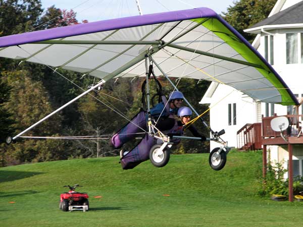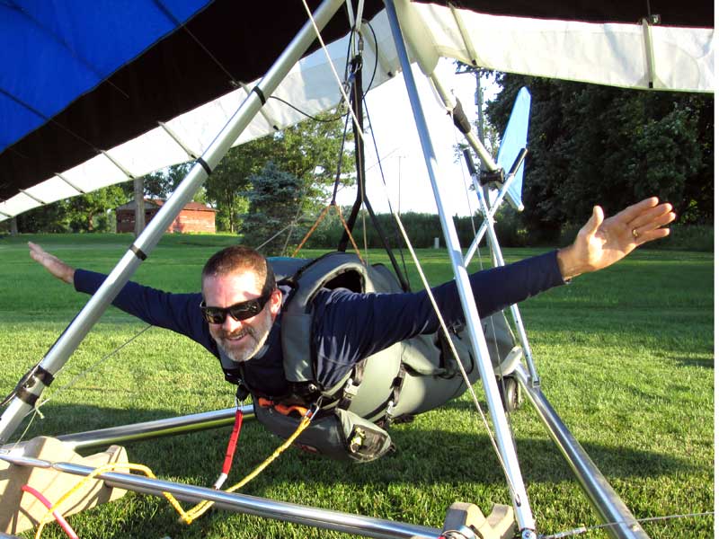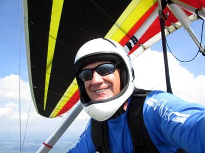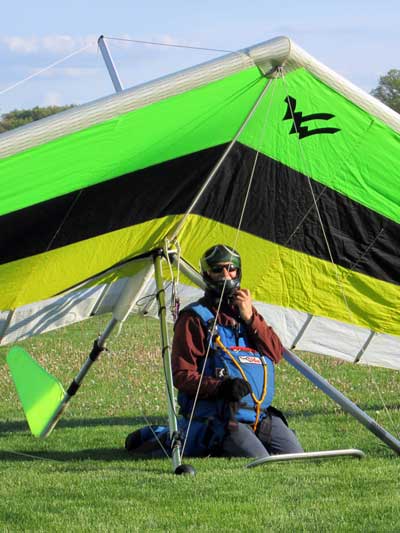 The Chris Bratsis Report Sunday September 28, 2014 Hi Bob, Here is a note about last Sunday Sept 28! I'll admit I was not too optimistic with the forecast. It seemed like it was going to be just like Saturday which was sled ride city for everyone. I chose not to fly and play launch director. Any way Sunday I arrived about 12:30 and scuttled about shooting the breeze with; Brian Ridder, Trevor Gildersleeve, Tom Niblick, SkyDog Bob Grant of course), Lisa Colletti, Tracy Tillman and Owen McDermott from Canada. Am I missing someone??? If so I'm sorry. Well the sky began to turn, well, normal!!! An unstable air mass had moved in and haze domes were forming along with some scattered cumulus wispys. So around 3:00pm the lemming rush began. Trevor went off first and the rest of us followed. Tracy dragged all of us into the sky and exclaimed, "It's a no=brainer". For whatever reason I stayed mostly to the north of Cloud 9 field and flew with you for quite a while. I also met up with Tom "Nibbles" and Brian Ridder right over the field. We all stayed high for most of the flight around 4400 feet. Lisa must have been flying down south of the field so I never saw her and you took off for places unknown. I think later you told me you went north west. After a couple of hours I saw pilots landing. I figured I had better land as my son Alex was coming out for his first ever tandem flight with Tracy so down I came and had a good landing except I did over shoot the spot. I believe Brian Ridder was last down shortly behind me. I think I had 2 hours & 15 minutes along with everyone else give or take. Then My wife Pat came out to watch Alex take his tandem flight and boy was he stoked. He has always wanted to fly. Maybe the bug will bite him too! WoW! what a great late September fall day of soaring. Couldn't have been much better. See You in the air! |