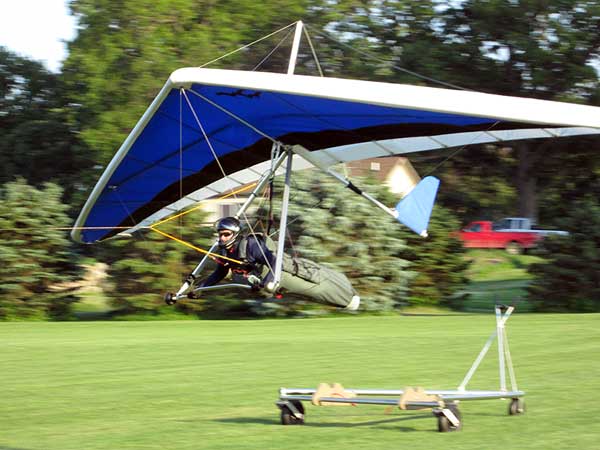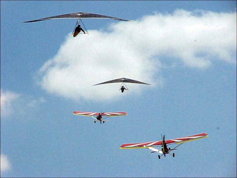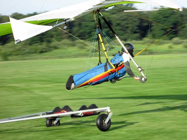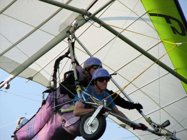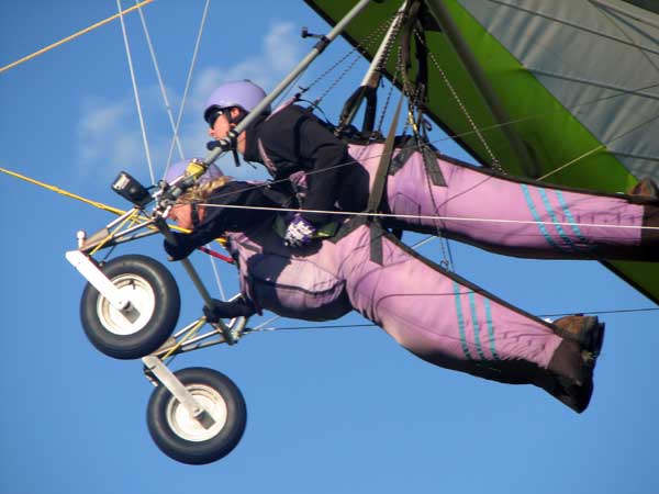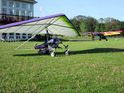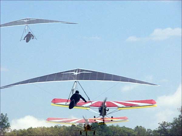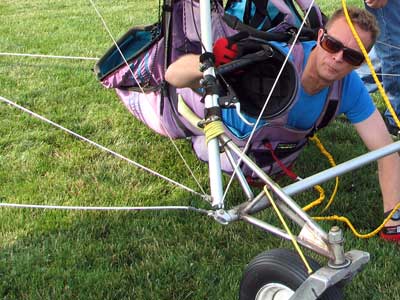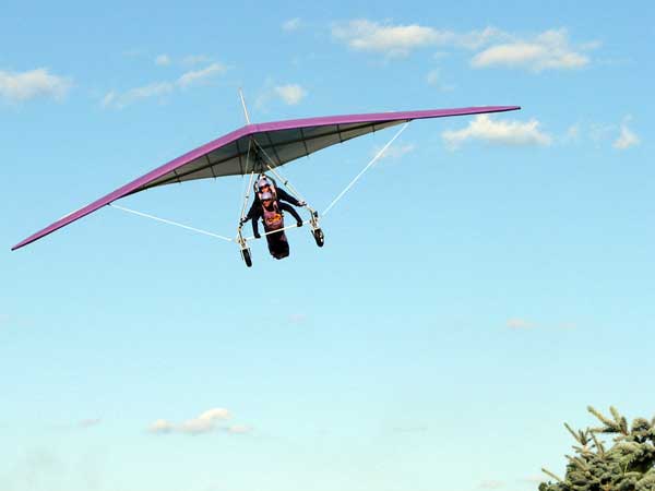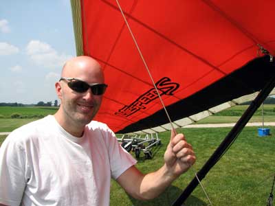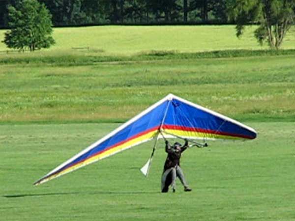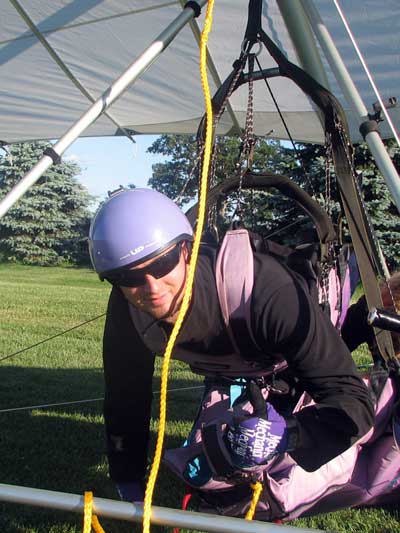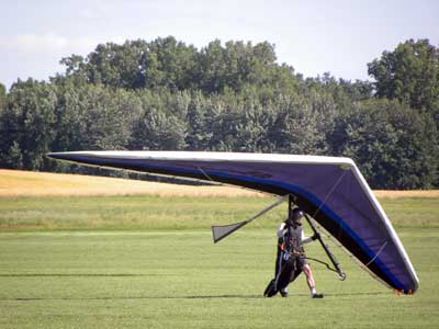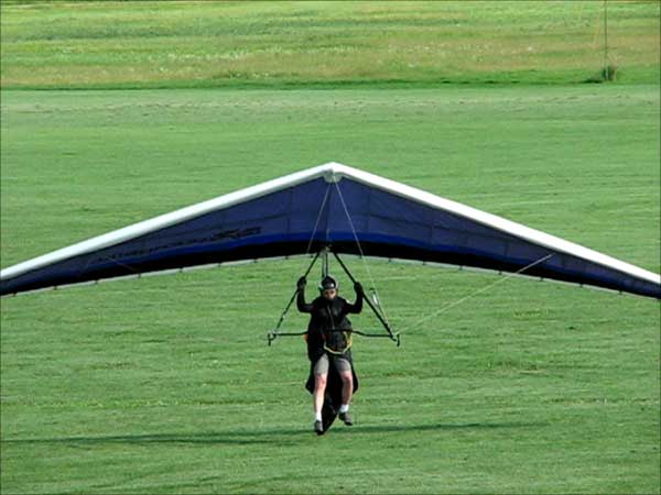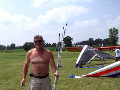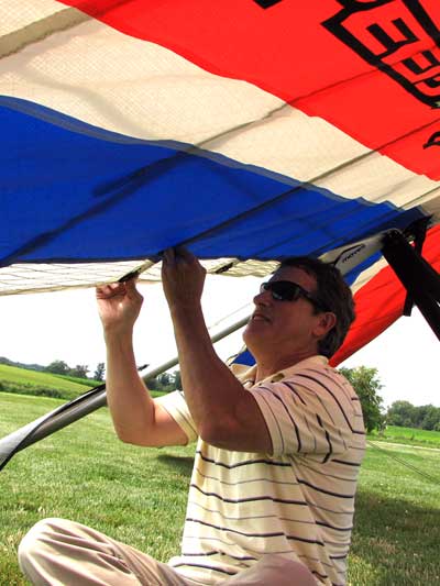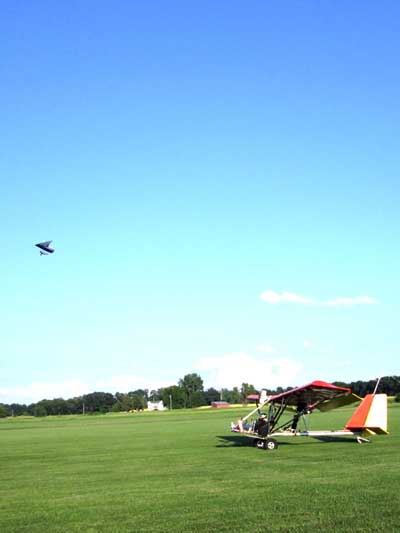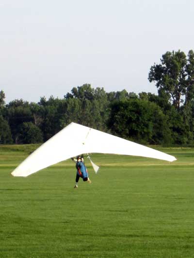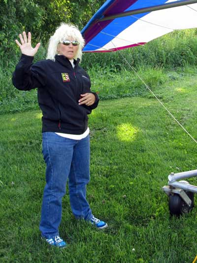 The Skydog Report Wednesday September 3rd Patrick O'Donnell and I heed for Cloud 9 as the forecast says sunny and warm. We get there at 11 am and Tracy is rolling the field and we set up. Soon Tom Niblock and Brian Deimling drive in. A little later Bernie Spring and Bob red show up so we have a good group to fly with. Lisa come in around 2:30 and gets into the air Quickly. The rest of us had already taken flights and I lasted for 54 minutes and the others had 45 minute flights. Lisa blows us away staying above 4,000 feet for one hour and thirty one minutes. For most of us it was a struggle but Lisa made it look easy on her new Litespeed. We all tried a second flight but I only lasted 25 minutes on my second flight. On my first flight I had got up to 3,671 feet. Lisa's highest was 4,650 feet. Not a stellar day but well worth the drive for us. |