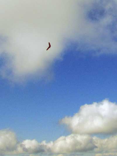 The Skydog Report Sunday August 3rd and I am at Cloud 9 for another great day of flying. I get into the air first at 1:30 and Tracy puts me into a good one and I work it up to over 4 grand. In the first half hour I was up and down a lot but after that the thermals joined and things got a lot easier. All the regulars join me and we get some great climbs throughout the afternoon. This flight lasted 2 hours and 22 minutes and the highest that I got to was 4,760 feet. I finally got low and took a second tow and I lasted 1 hour and 22 minutes up to 4,557 feet. It as a great day for all of us but a long drive for me for a one day trip. |