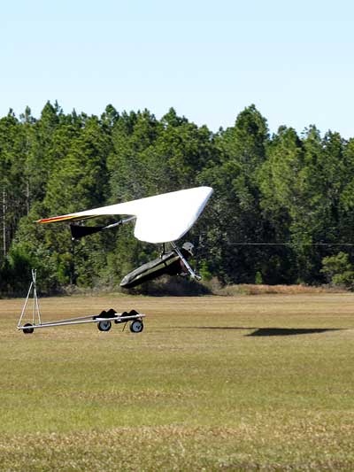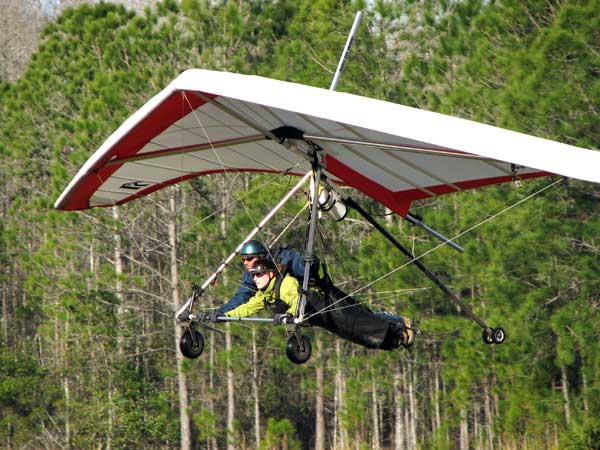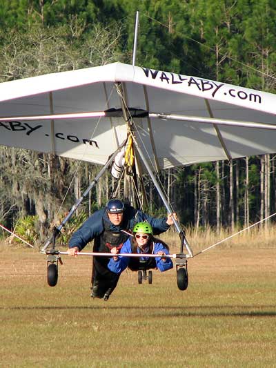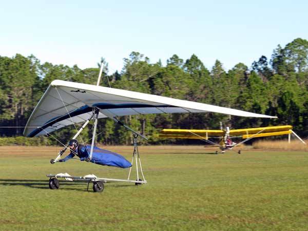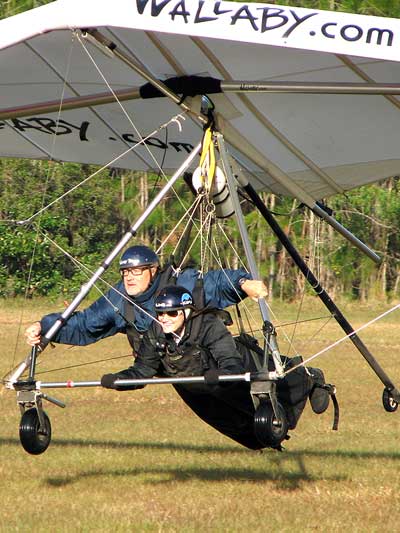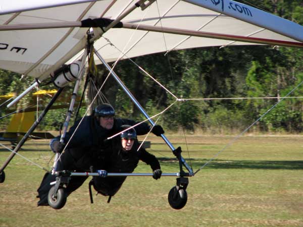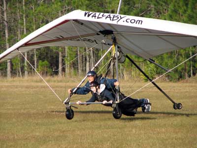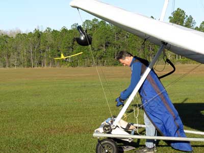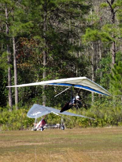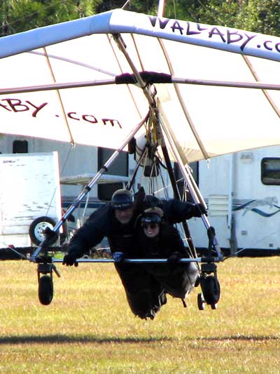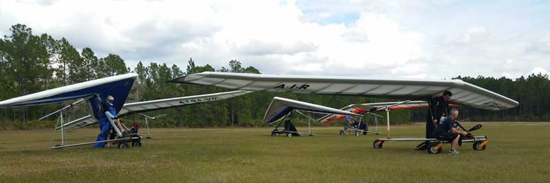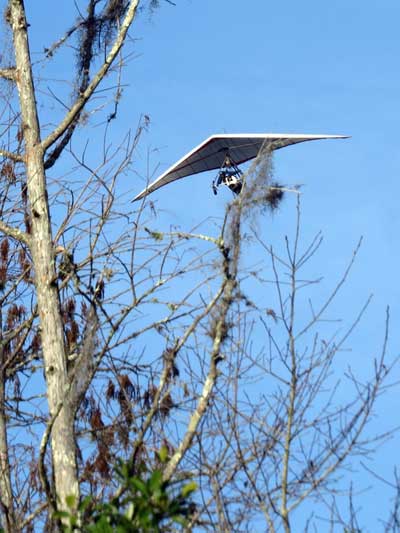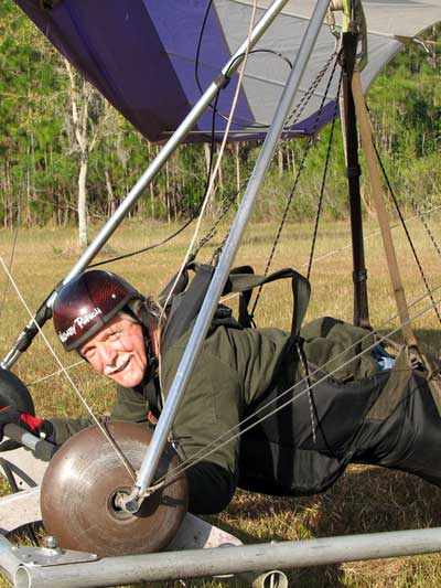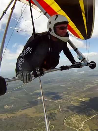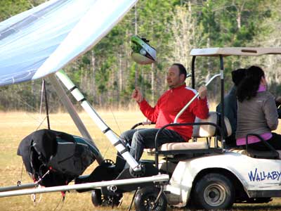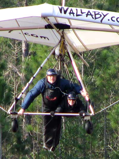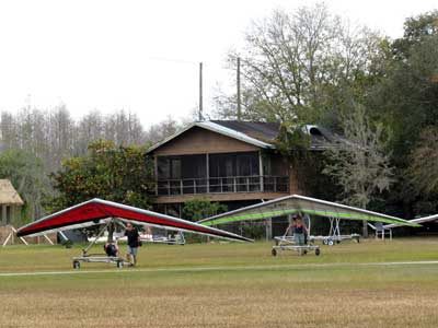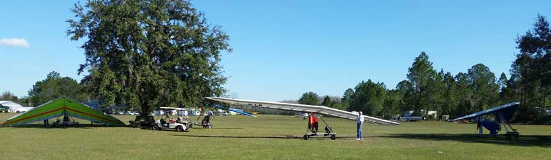 The Skydog Report Wednesday February 4, 2015 Maureen and I and our friends Eric and Mary arrived at Wallaby Ranch last evening and the temperature was 75 degrees while when we left London, Canada it was 24 degrees and we shovelled two feet of snow to get out of our driveway so we are happy to be here. Today we did a 15 mile bike ride along the Van Fleet trail and it was real nice. When we retuned to Wallaby the pilots from Calgary, Canada were taking some extended sledders. The forecast shows that Saturday and Sunday will be good for flying and maybe even Friday so as I am writing this, we are excited and waiting for some good flights. Maureen is going to ride the Van Fleet trail in the morning for 25 miles and I will pick her up at hwy. 50 near Quest Air and then maybe a flight later Friday. Friday Feb. 6, 2015 and Maureen is on the trail and she ends up going both ways for a total of 46 miles and I ride for 13 miles with Flash onboard. Hoping that Saturday is good for Hang Gliding. Saturday February 7, 2015 and here we go. I was second off behind Scott L. and we got high right away at 5 grand. Soon I saw Jason Williams coming up so I joined Jason and we thermalled together for a good hour or more. There were at least fourteen pilots today and it was the last day for the boys from Calgary, Canada so they were jubilant to get a super day before heading home. Linda flew with me for almost an hour and Mitch and Mike Barber went XC To Bok tower and Mitch was the last to land just before dark. Rich Bremer flew his Ghostbuster and we hung together near the end of the day. I flew for 3 hours and twenty eight minutes and I was between 5 and six grand for most of the day. Sunday's forecast looks good so more exercise tomorrow. Sunday February 8, 2015 is another wonderful day and we must have had at least 15 pilots in the air. I got of first with Scott next and after searching for 15 minutes we found some good lift and took it up to over five grand and today I had the GoPro on so I will have a video in a few days. Rick Bremer on his Ghostbuster soon came up to us and we thermalled together for a half hour or so and then I saw a gaggle of pilots over to the east so I headed over that way but the lift had died by the time I got there so I came back over the orange groves and got down to 2,200 feet and then finally got another good one up to base and got sucked up real bad and finally got out of it. After two hours there was a big blue hole over Wallaby and rick and I landed along with others. Mick Robson, Rick Bremer, a new pilot and myself took off after dinner at 4 pm and we all had great flights. Rick got over six grand and I got to 5,300 ato. Mitch flew to Quest and Back and Linda flew to Quest and Landed there. My airtimes were 2 hours and 5 minutes and 1 hour and 11 minutes on Sunday. |