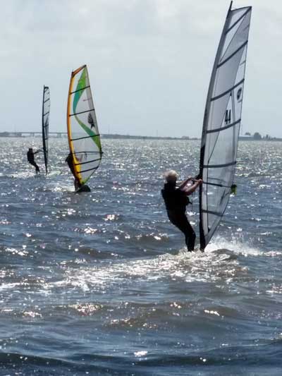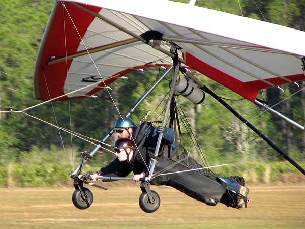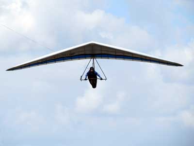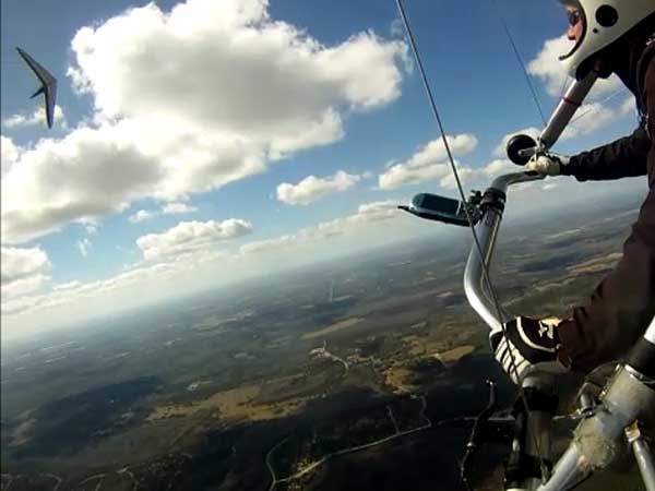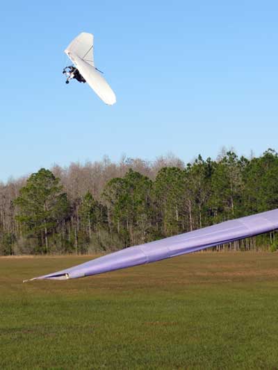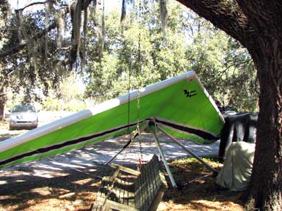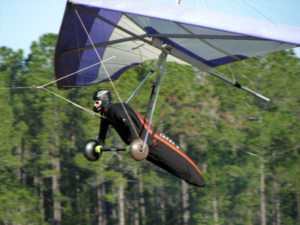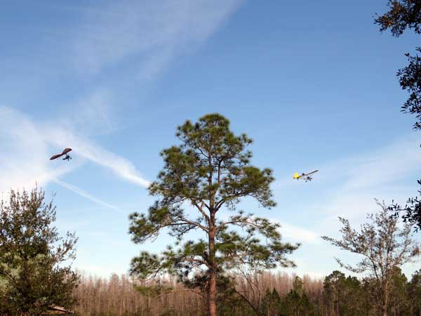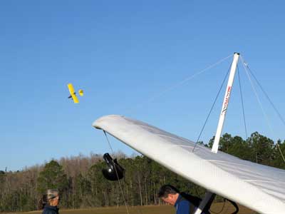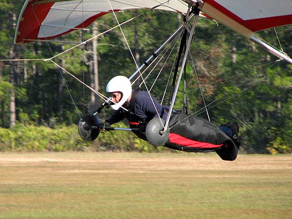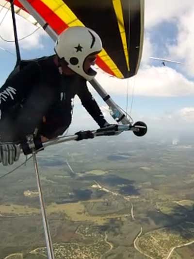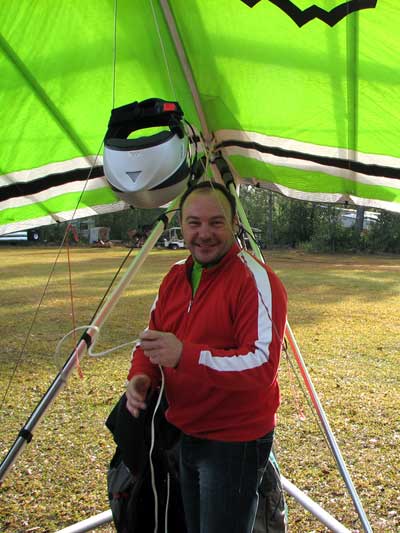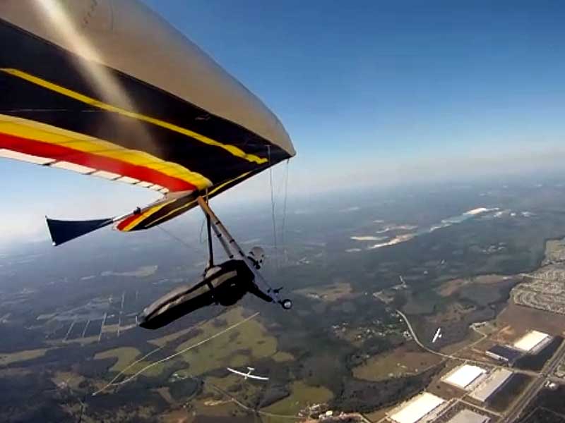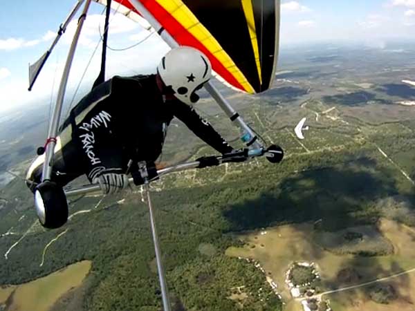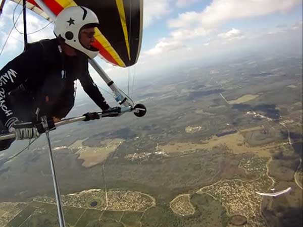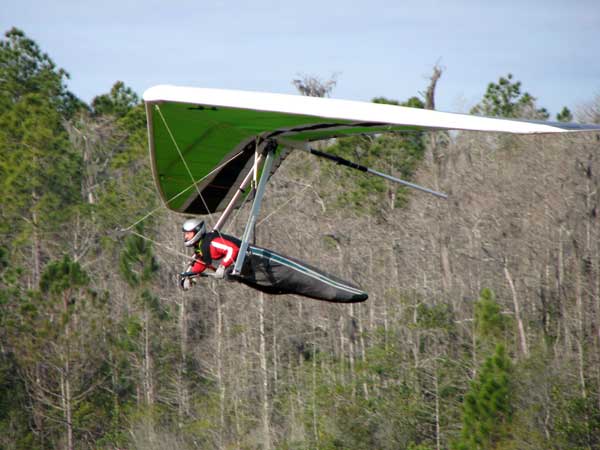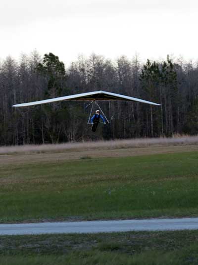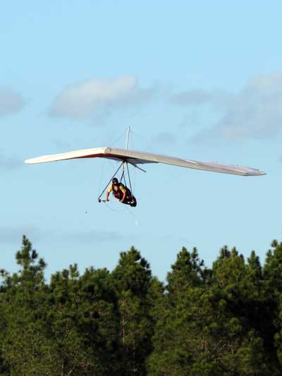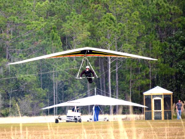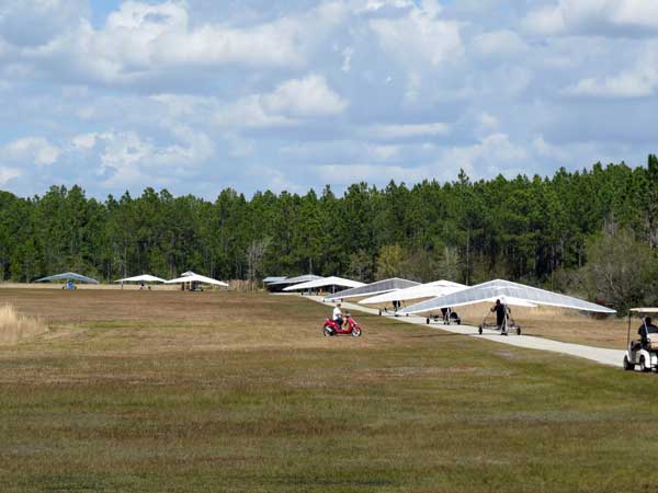 The Skydog Report Thursday March 12, 2015 Here we go again. We took off around 2 pm with 16 gliders including four rigids. At first lift was good but sink was also big so I got sucked to the ground and took another tow and by now the lift was closer together. Oded was up at base and I joined him at 5,300 feet. During our three hour flights at least two sailplanes joined us over the orange groves. My buddies from Cloud 9 showed up Thursday morning and Chris Christopherson and Tom Niblock both were thermalling at base with us. Later in my flight I joined up with Eric Paulson and Griffin from NH and they led me close Hyw. # 4 where there was a good line of lift up to 5 grand. I finally got out of my comfort zone being to far away from the landing field so I headed back and noticed Oded landing just before me and shortly after Griffin and the Eric came zooming in for nice landings. It was a great day with some monster climbs and easy to stay just below the clouds. My flight times were 20 minutes and 2 hours and 53 minutes and I topped out at 5,470 feet ato. Oded had one flight for 3 hours and 17 minutes. Friday Windsurfing at Cocoa Beach 3 hours. Saturday morning starts out windy but by 2 pm it has calmed down some so I take off and get a 40 minute flight p to 3,704 feet. By the time I land others are getting towed up and I get in line and go again for a 24 minute flight and I find lots of sink and land. After lunch break Fay tows me into a good one in the blue and I follow it back to the northeast and it really turns on. I get to thermal with Kevin from Alberta, Canada and then Oded joins us for a bit and next I am alone for a while but then I see Rick Bremer on his Ghostbuster farther North close to Publix which is 5 miles out so I core my way up and join Rick and we thermal together for a half hour. A big dark cloud approaches and we split and I head for a sunny field to the south and when I get there I get a little beeping and work my way toward Wallaby Ranch for a nice landing after a 1 hour and 46 minute flight. Oded has a nice 2 hour flight and tom Niblock got up to 6,300 feet and the best I showed was 5,088 feet ato. More tomorrow. Sunday has a forecast for light winds but when noon comes around it seems windy enough that the pilots are not eager to be first so around two PM I get some enthusiasm going and pilots start heading for the east launch. Griffin and I get off after a couple of others and get into some good lift over the warehouses. The rigid wings including Oded are leery as it seems gusty on launch but a half hour after I launch Oded takes a tow and gets up with the others that are staying high. There is a sailplane competition from Sandhill soaring Club so we must keep an eye out for them as they pass through. I found the best lift over and past the warehouses to the east. Oded on his VQ and a sailplane piloted by Steve Arndt come up below me for a video shot that I will post on Youtube later. After an hour I am in sink and get down to 1,100 feet ato and prepare to land but I find some lift east of launch and take it back up to 4,500 feet and feel as though I am back in the game. After finding sink again I land with a 2 hour flight. I am back in line and up again in ten minutes and this time I last for 30 minutes and sink out again and Oded and Rick Bremer are staying high like 4,700 feet ato. Oded lands after 3 hours and 22 minutes and Rick lands close to 7 pm as usual. It was a great day for many and some of us found the sink too often. Monday is a spectacular day of Hang Gliding. Tom Nejame had the bug to fly to Quest Air and meet up with Larry Bunner and Davis Straub who had plans for a big triangle and so Tom took an early tow out of here at 11 am. We all thought that he would likely sink out as the cummies were just starting to show but sure enough Tom was at base before we knew it and heading north. Later in the day Tom was back with a story of a great flight where he chased Larry and Davis and finally caught up with them and soon left them on his journey around the swamp and other locations totalling a distance of eighty-eight miles calculated by Larry Bunner. Tom had his usual happy face after landing back here at Wallaby Ranch. Griffin, Oded and I got out to the oak tree launch around one o'clock and Griffin took off first and me next then Oded and many others followed. Lift was great with lots of 1,000 fpm up so base was a cinch. Oded came in close for some good video shots. Also I had a Bald Eagle come within 30 feet from my tip and he smiled as he posed for the camera. My favourite part of this flight is thermalling with the birds and that lasted for a minute or so. I like the way they keep jerking their heads around to check me out. Later in the day Mikey Barber and I thermalled together as he was working his way south to Bok tower. Aric Paulson joined us and went to Bok with Mickey and they returned around 5:30 with big smiles. I think that is about a forty mile return trip. Chris Christopherson had a shoulder injury muscle injury so he was unable to fly today but his travelling buddy Tom Niblick had a wonderful flight with all of us. Another very special event in my flight was that while I was climbing above base the magic circle glow appeared on the side of a cloud and there was a shadow of my glider pasted in the center of the Glow. As I flew toward the circle the shadow became very large and looked like my glider was two hundred feet wide as I dove into it. OK so let's try that again so I circled around and made another pass and sure enough there it was again even more distinct. It was fun adjusting my glider angle so that the shadow changed shape. I circled around four more times getting different effects. The Glory happened after two hours into my flight so the GoPro was exhausted by then so no photo or video. Darn it again!! There is so much more to tell about this flight but my memory is wearing thin so I will try to get others to fill in the blanks