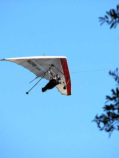 The Skydog Report Monday February 9th is Sunny until noon and then rain by 1 pm so we get some shopping done and I have a chance to update this webpage and then I can get at yesterday's video. OK so Video is done and here it is Friday and another windy day and it looks like flying may happen Monday. We have been biking a lot with all the windy days and luckily it has been sunny. Monday February 16 and the tandems get going early. Oded brings his son Darien and a friend Sophia for tandem rides and they really enjoy it. By noon the wind is strong again so no flying today. |