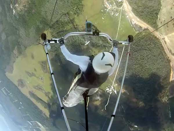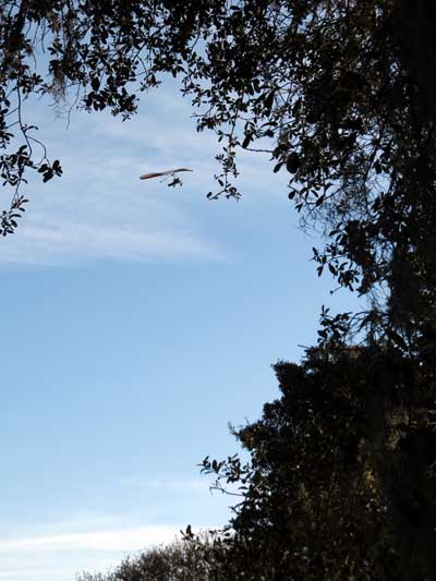 The Skydog Report Friday February 20, 2015 - finally two flights after not flying for twelve days of high winds. Jim Kolynich and I took of at 2:30 and then again at 4:15. Jimmy had a 32 minute flight and later a 17 minute flight. I had 29 minutes and then 27 minutes and we both had blue sky thermals, one that took me up to 3,200 feet. It felt good to have some lift although I did not find another thermal after my second one on each flight. Sure does help to have some cummies to show the lift. After flying JK goes for a five mile run with Bob Franklin. Sunday looks really good and maybe even Saturday if we are lucky. Saturday the tandems get off at 8 am and Damien and Bertrand from Switzerland get into the air. In the afternoon the wind gusts up and no one flies so Sunday is looking especially good. |