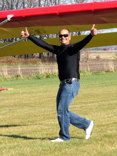 The Skydog Report October 23rd, 2015 Patrick O'Donnell and I went to the TOGA field and had a good day of fun and flying. I had forgot my Vario so I borrowed one from Martin and it took a bit of getting used to. Hick Hines and I stumbled onto a thermal at 500 feet ato and we played in it for about twenty minutes. It was a blue sky day again and I took two flights of 30 minutes each. Tim DeChamps towed to five grand and lasted for 48 minutes. There were eight of us flying so check out the photos and the video. |