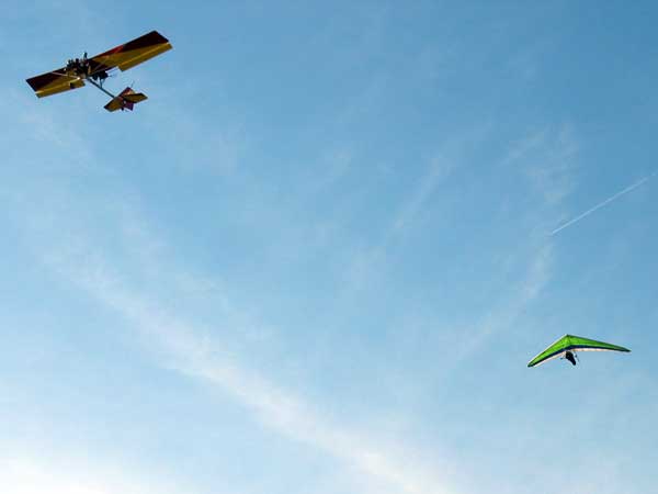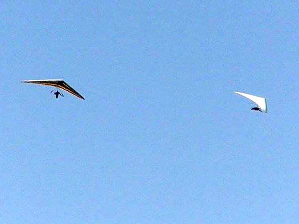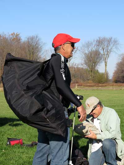 The Skydog Report Tuesday November 3rd Maureen and I went to the TOGA field on a blue sky day that turned out to be close to 70 degrees F. James DeHart was our tow pilot and we had six pilots hoping to get into thermals. As it turned out the thermals were very few and not all that strong. Grazi had the longest flight of the day with forty two minutes from five grand and I took second place with forty one minutes from a mile high tow. My first flight was 22 minutes from a 2,500 foot tow. On my high flight I was down to 1,200 feet and bumped into a small one that kept me at that height for about five minutes but then it was down for a landing on the mammoth grass runway. We all were very happy to have such a nice warm day so late in the year. Thanks to Martin for keeping things running smoothly. |