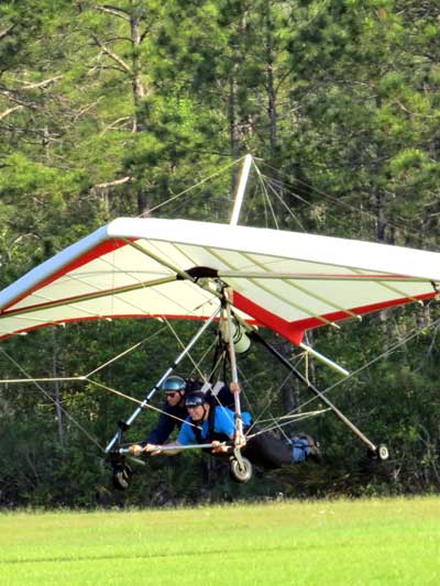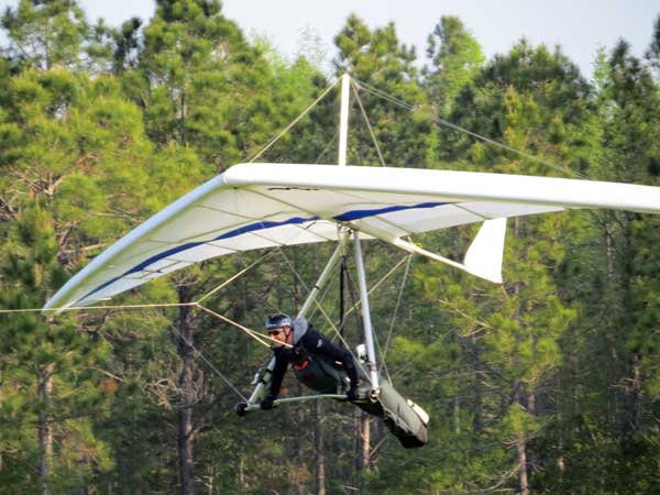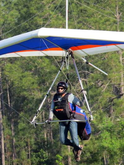 The Skydog Report Sunday April 10, 2016 and the morning tandems are off at 8 am along with a few solo pilots. Jean Martin Welker from Switzerland takes a practice flight and the wind is letting him park at altitude. We wait while the wind blows with gusts up to 20 mph and finally at 4 pm we hustle out to the west launch as the wind appears to be slowing to around 12 mph. I get off first and it seems just OK with some bumpy times on tow. Fay drops me off at 2,200 feet and I bump into good lift near the warehouses that takes me up to four grand. while cruising around searching for more I see Steve Martin on his new Moyes Gecko and it looks like he is at base at 6 grand so I work under him and catch up and we stay together for a while. Tom Lanning is here now after a week at the Green Swamp Klassic. There must be fifteen or more pilots here now looking forward to the Wills Wing Demo Days. Brian Deimling came in from Michigan today and that makes six pilots from Cloud 9 invading Wallaby Ranch. Jimmy Kolynich has a 2-1/2 hour flight landing last at 7:08 pm. Most everyone got up to 6 grand today so although we started later in the afternoon the day really turned on. My flight today was 1 hour and 35 minutes and up to 6,154 feet ato. and I did a round trip leaving from the warehouses and running up north to Sand mine road over the Publix store and the west over the sand mines and then south to past Hyw. 4 and then over to the cloverleaf at 4 and 27 always staying above 3 grand but then when I headed back to the ranch I was down to a grand and finally landed. At 500 feet Tom Niblick and I were doling it out and Tom caught a goo thermal that he took to 3,500 feet. Great flight Tom. |