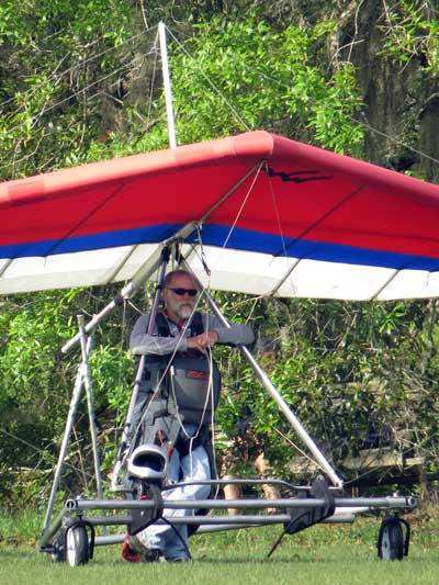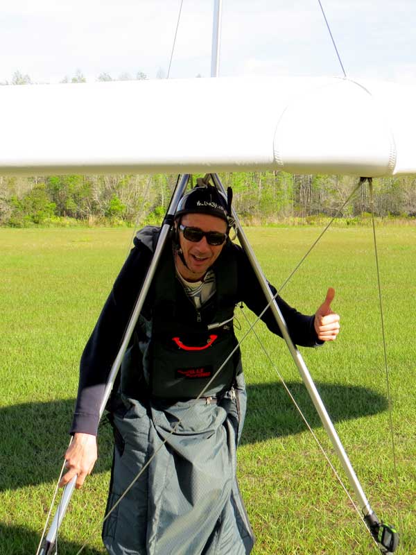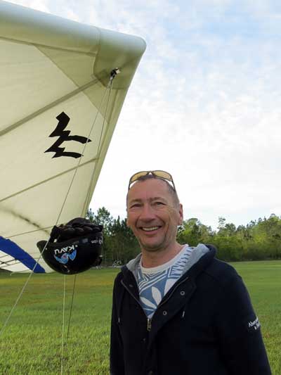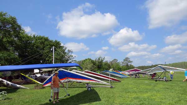 The James Kolynich Report Wednesday April 13, 2016 All the gliders are set up and ready to fly in the sunny warm Florida skies. The new carbon fibre king posts and control frames with the dark tinted sails look really cool. The entire Wills Wing gang is here including Steve Pearson, Mike And Linda Meier, Zack Majors, Paul and Ryan Voight from New York. The day began with a slew of instructional and demo tows with three tugs tugging continuously. The sumptuous breakfast was delayed a bit due to all the activity. Cummies stared to form about 10 AM and continued to build until it started to OD later in the Afternoon. First gliders were up at 11:50AM. A large group seemed to hang out about 2K in loose gaggles making large flat turns. This lift culminated in a monster flat bottomed pancake which parked over the Ranch. I was aiming for a 1 PM to go but got delayed when I forgot my helmet which was retrieved by Aric on the Wallaby staff. Ready to T.O. when Oliver assisting with the launch noticed that my parachute was thinking about coming out of the harness. He promptly fixed it on the spot. Finally I was up and out at 1:46 PM and deposited in a nice thermal by Fay Barber. Banking my ATOS, I worked my way up through the FLexies to cloud base about 3.9K. When I wasn't in the lift I was zooming toward turning gliders or the next dark cumulus Cloud. Petty soon just myself, Rick Bremmer in the other ATOS and Mark Bourbonnais in a Wills Wing T2C were left looking for lift in all the right places. We would thermal together then leave to hunt for the increasing and elusive lift as the sky darkened. Then about 3:30 PM the sun came back out which turned the lift switch on. Mark and Rick found one and took it up over the orange grove. I spied a developing cum nimb to the West which prompted me to circle the Ranch perimeter looking to come down in the very buoyant air. The wind suddenly switched to the North and I touched down softly just before 4 PM. Rick then Mark came in 5 to 10 minutes later after spying the same rain cloud to the West. Rick and Mark got about 3 hours air time each. I was lucky to get 2 hrs and 8 minutes due to my late start. Resident pro pilot Mike Barber and comp pilot Mick Howard flew west down Dean Still Road, Then up Route 33 to Quest Air flight park. Mikey said it was slow going. After landing the sky cleared and the late afternoon instructional and demo flights began. I was tired and hot. Parking the glider and putting my gear away, I then went for a refreshing swim in the 6 feet deep pool. Can you visualize a cannonball? Thanks again to the Wallaby Ranch staff for taking care of my equipment problems so Quickly and getting me airborne. Oh, almost forget to tell you about the pizza and beer party with live music which started after Everyone had landed. The rain did not start until the evening. See you tomorrow! |