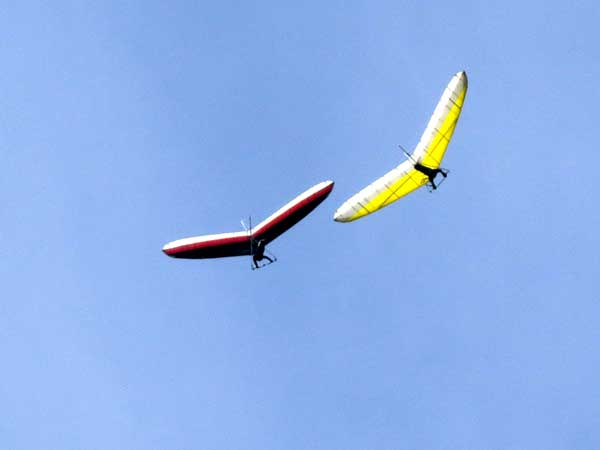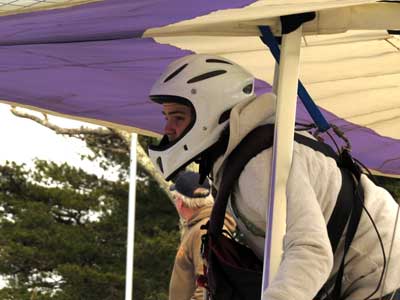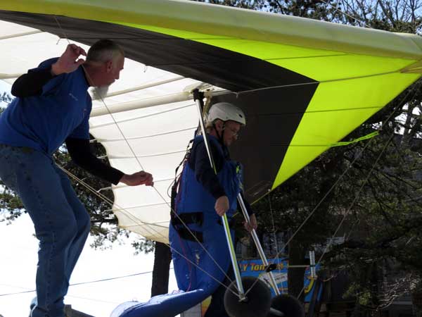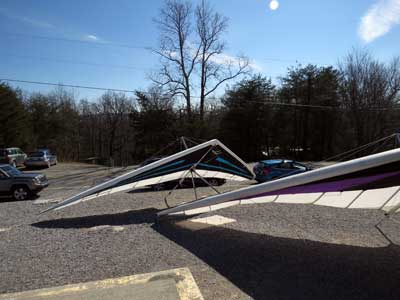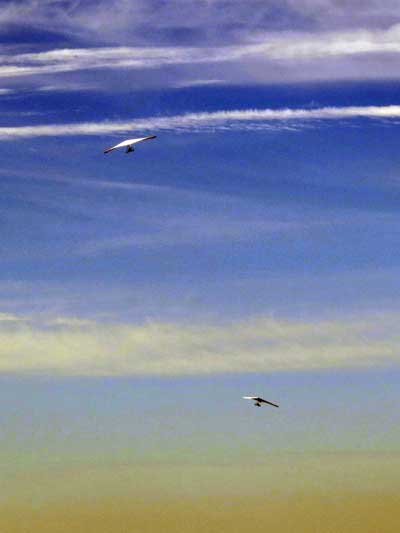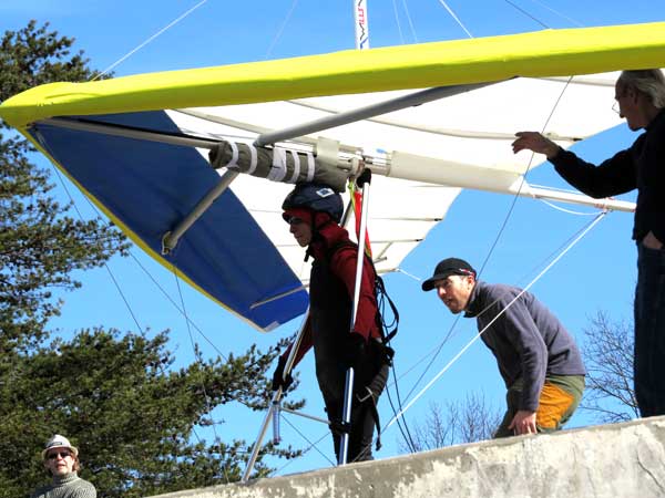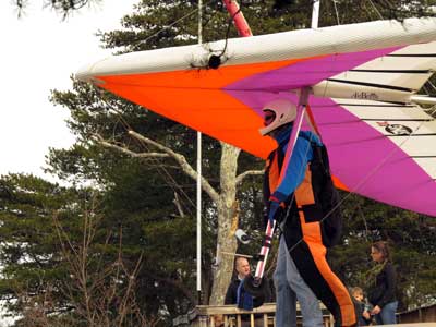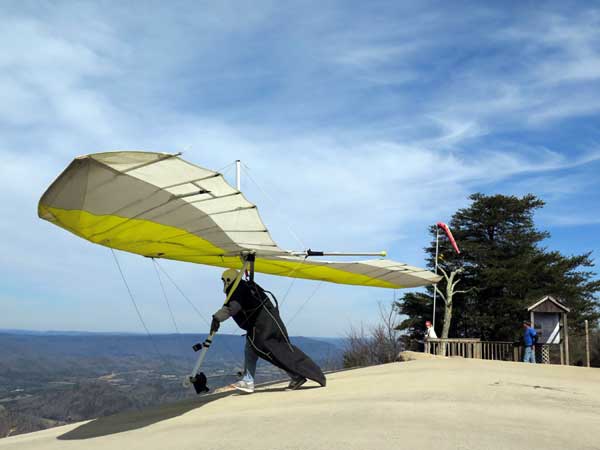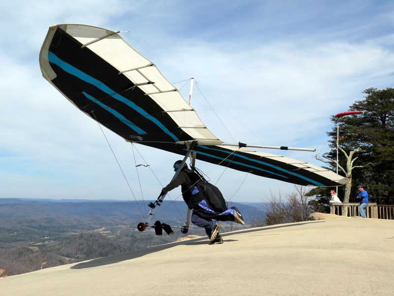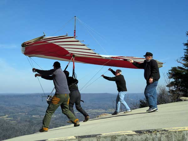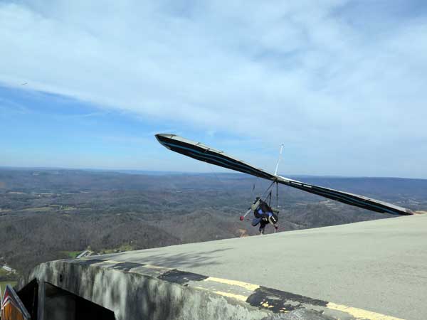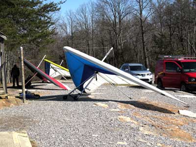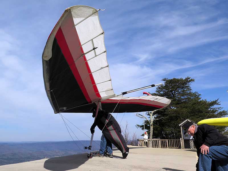 The Skydog Report We leave for Florida on Saturday morning February 6, 2016 at 6 am and arrive at Lookout Mountain flight park near 10:30 in the evening and Sunday morning we wake to a sunny day at 40 degrees F. Patrick, Maureen and I go to Trenton for breakfast and get Patrick back to the take-off by eleven am. Patrick sets up along with a dozen other pilots and the wind is coming in nicely at 10 mph. A few pilots take off by noon and some sink out but finally around 12:45 some stick and get up to about 1,200 feet way out in the valley in front and to the left of launch. Patrick O'Donnell is ready to go with his Sport II and gets his left wing lifted on his take off run and the right tip drags on the cement ramp but Patrick pulls it off and gets the glider straightened out and he gets into lift not to far out and soon is above take off and from now on we are going to call Patrick the "Lookout Drag Queen". Now there are six gliders in the air and Patrick works his way to the top at 2,800 feet above take off and gets one and one half hours airtime. Maureen and I take photos and video for a while and soon we take off to Cloudland Canyon which is just seven miles down the road. We climb down to the bottom of the canyon which is likely a thousand feet and take some photos and then walk back up to the top and away we go to the landing area where Patrick has landed and is all packed up and waiting for us. We load up and head toward Florida. Monday afternoon we arrive at Wallaby Ranch and move into Prior's hooch and get organized. The forecast says windy until Thursday when we plan to make our first attempts to fly. If any of you can help with the captions below, please let me know at caskydog at gmail.com - Replace the at with @ |