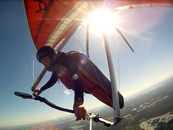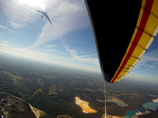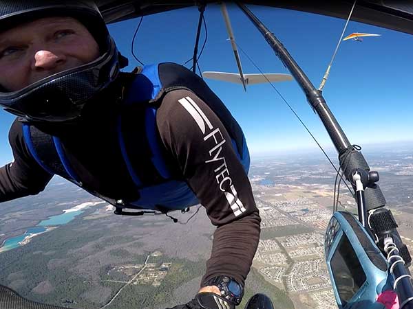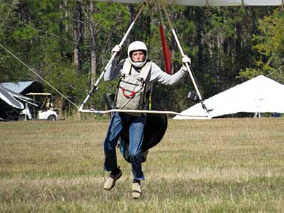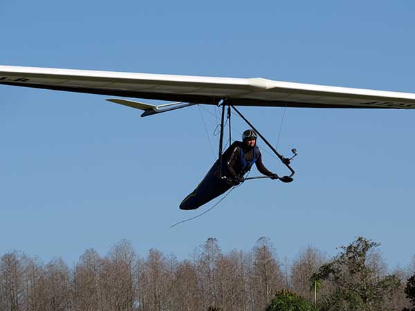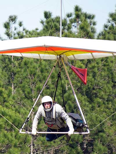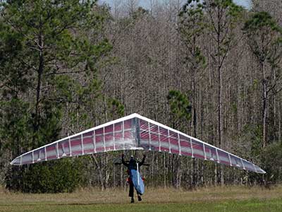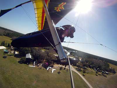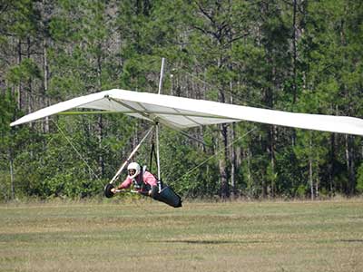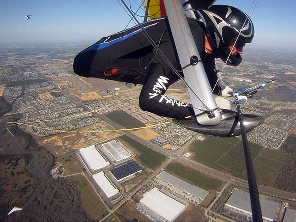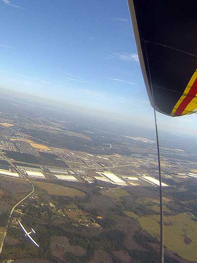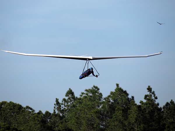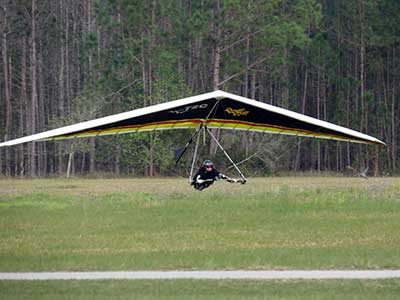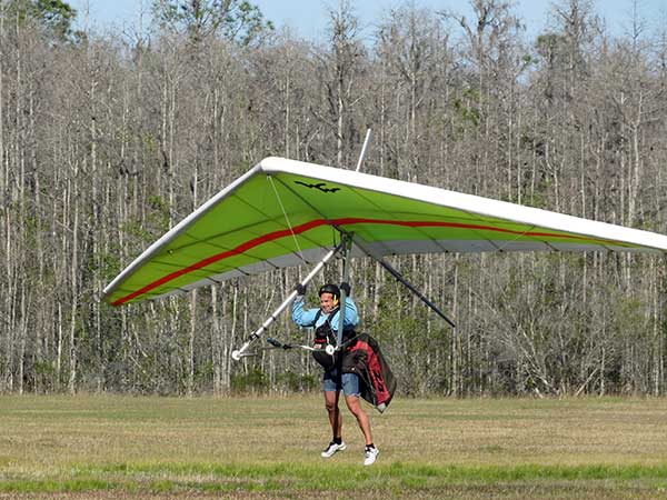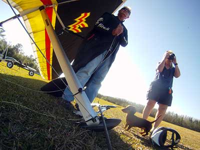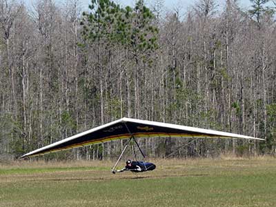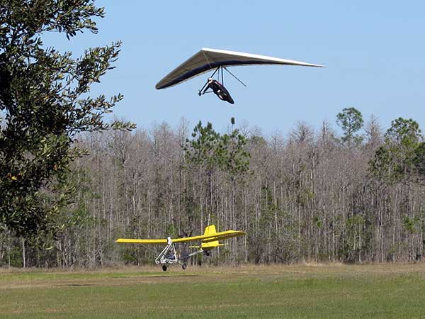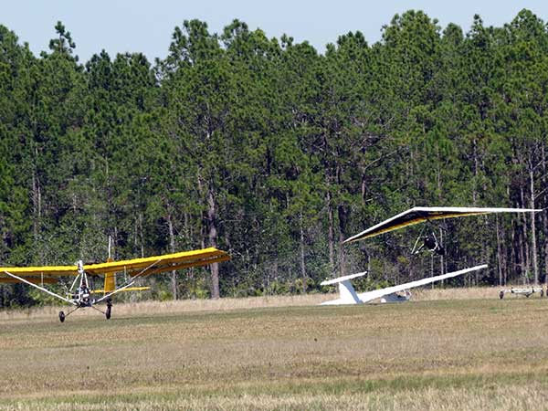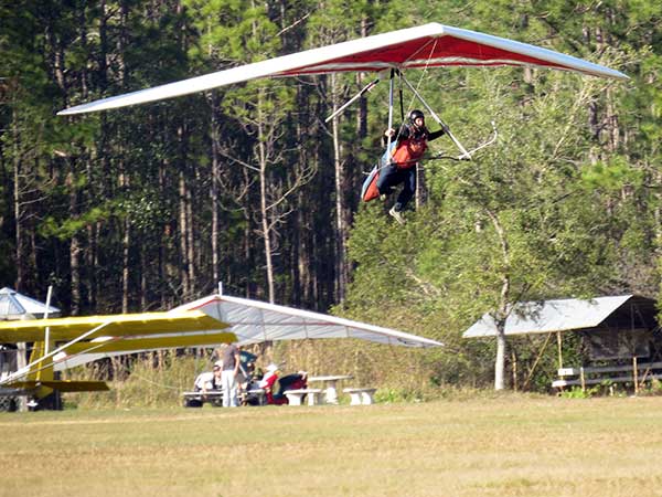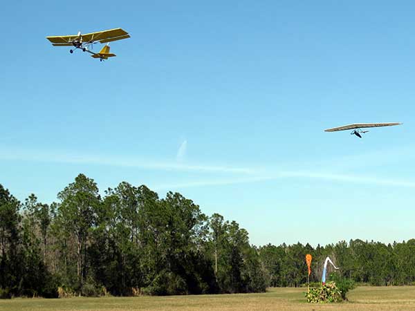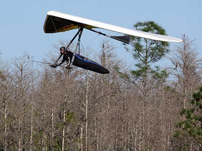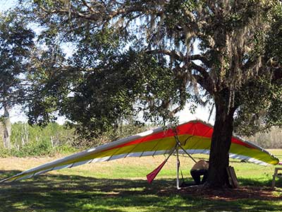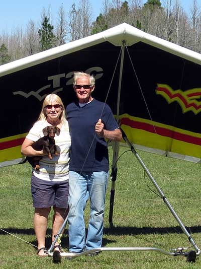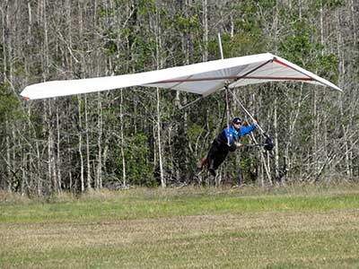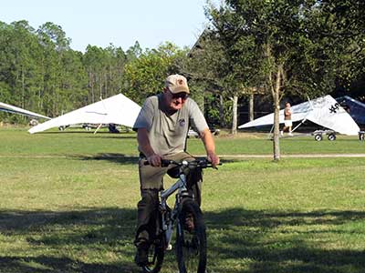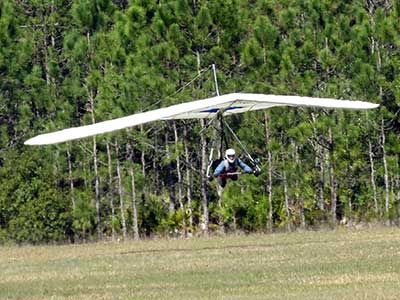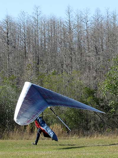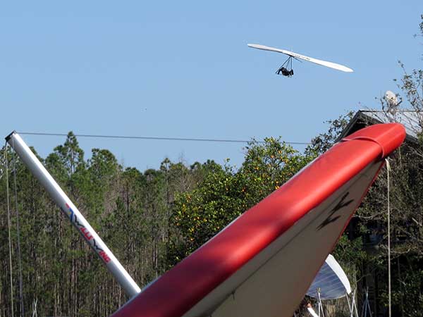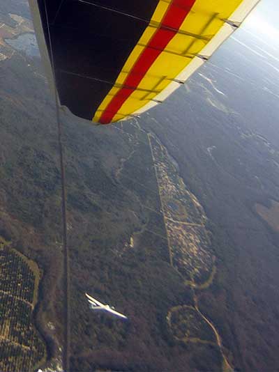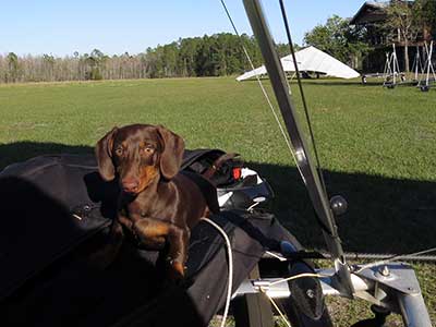 The Skydog Report We are leaving London, Ontario, Canada Saturday February 4, 2017 and hope to be at Wallaby Ranch by Monday. Monday February 6, 2017. We arrived Sunday evening at 9:30 and it was a successful two day drive with Finnegan. Monday morning we arranged or belongings in the cottage and I set up my glider after we took Finny for his first two mile walk in Florida around the flying field at Wallaby Ranch in the seventy degree temperature. Around noon we went for a bike ride on the Van Fleet trail and Maureen made 25 miles while Finnegan and I went fourteen miles. We saw two alligators in the swamp one being about eight feet long and the other, a 30 inch baby. After the bike ride we came back to the Ranch and I took a flight which only lasted 22 minutes. Others had taken off earlier and I think the longest flight was one hour and thirty minutes by Kip. I will try for an earlier take off on Tuesday. Tuesday, Wednesday and Thursday look to windy so we don't expect to fly until Friday and then the forecast looks good until Monday. Oded called Wednesday and said that George Adams and him are driving down south and will be here on Friday. Maureen went roller blading on Wednesday and I biked along with Finnegan in the basket. Thursday we took it easy and walked Finnegan around the field a few times. Around 9 pm Oded called to say that he and George were close to Charlotte Carolina and would be arriving at Wallaby around 1 pm. Friday morning. Friday February 10, 2016 we woke to find Oded and George had arrived and the sun was shinning but still too windy so we drove to Quest to pick up George's new T-2-C while Maureen went for a bike ride on the Van Fleet trail and now we are waiting for the wind to drop and hope to fly later today. We did not fly Friday. Saturday February 11, 2016 and we have a good day of flying. Sunny and no clouds but lots of lift. I get off first and hit good lift and a half hour later I am down to 840 feet over the warehouses but hit a good one and get up to over 4 grand. Oded and George come up and have good flights up to 4 grand also. George and I worked some lift for a while. There must have been about fifteen of us floating around. Chris Starbuck was way high for a while and I finally caught up to him and we circled together for a while. I was thermalling along Hyw. 27 near the warehouses and east close to the Omni Center for most of my flight and I saw a few pilots circling over the orange groves so I headed over that way but decided I would be better off over the warehouses so headed back and into the consistent lift. Griffin H. and Mike Barber were flying together for a while and I joined them for a bit. After a couple of hours I got down to 1,400 feet ato and then found some lift over the warehouses again and worked it back up to 4,400 feet ato. Finally after 3 hours and 6 minutes I landed and Mick Robson landed a half hour later. Sunday February 12, 2016 and here we go again with a sunny morning with lots of tandems and we are excited to have another great day in the sky. I get off first again as the other are hewing and hawing about the wind direction and where to start. I went over to the east side of the field and called Malcolm for a tow and he gathered up a couple of others to get us going. Paul towed me up to 2 grand into a good thermal and I pinned off and I worked the first one up to 3 grand. After a few minutes we had a good group in the sky and there was lift most everywhere. After a half hour I was in sink and I got down to 1,400 feet but luckily I found a thermal popping out of the landing field and took it up to over four grand. Oded and Scott L. joined me in a good one and then a lone sailplane joined us and Oded caught some good video. When the day was done I had been up to 4,700 feet ato and Oded topped out at 4,800 feet and Scott must have been up to that height also. Mick Robson also had a good flight in the Carbon Dragon. My airtime was 2 hours and 21 minutes. Oded logged two hours. George logged one hour. Mike Barber was last to land with a fine flair. Monday February 13, 2016 and another sunny morning with tandem going off by 8:30. Maureen and Oded go for a 80 Kilometre bike ride and George and I get some things done around the Ranch. The forecast says too windy today so no Flying. Tuesday February 14, 2016. The forecast was for cloudy by noon but the tandems went off nicely this morning and by noon the sky was looking pretty good with about 60% cloud cover. Scotty says that the forecast is for good lift so we get ready ad we are off by one pm. George get up first and I follow with Scott next and then Oded and Walt and others. Paul drops me in a good thermal at 1,700 feet and I work it up to 2,800 feet which was close to base. George looks to be struggling and Scott comes up and we get together in some good lift that takes us to base at three grand. I find sink and get down to 1,400 feet and I see George up high like 3 grand as I find lift just to the east of the field and I take it east over the warehouses and get to base again. Oded joins me and we circle together for a while and then Oded takes off to the south and I lose track of him. I move to the west over the landing field and get low again but find another good one coming out of the field and work it back over the warehouses again and a little farther north where I get good lift that takes me up to 4,432 feet ato. Scott and I fly together for a few minutes under the clouds. Later in my flight I get low again like 1,200 feet but again I find lift coming out of the landing field and I take it up to 3 grand and Mick Robson joins me and we have a fine time working the last lift of the day. I leave Mick close to Omni and head back for landing after a great 3 hour and 27 minute flight. Oded had landed just before me and Mick drifts in jus after me. Wednesday is very windy and the land sailors are zipping along the driveway. Maureen and Oded went through the B-Bar Bird sanctuary whil