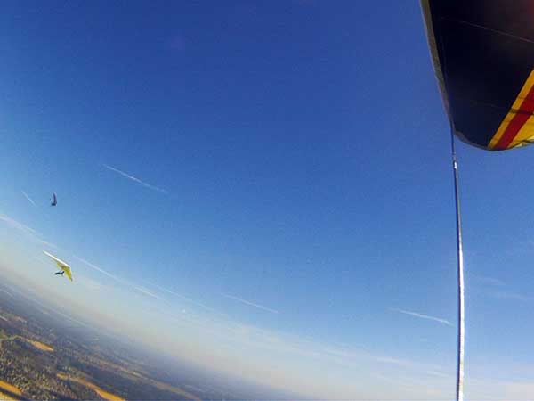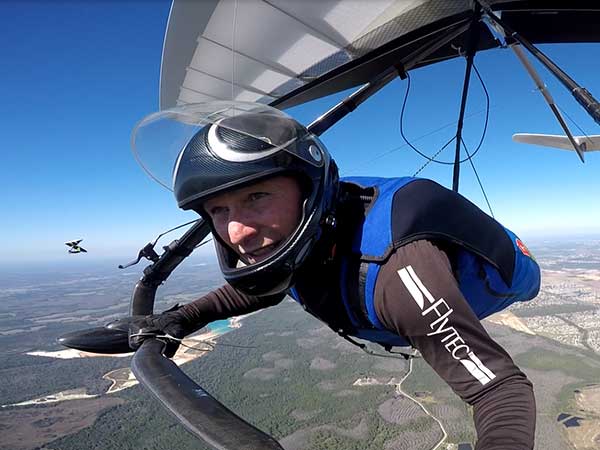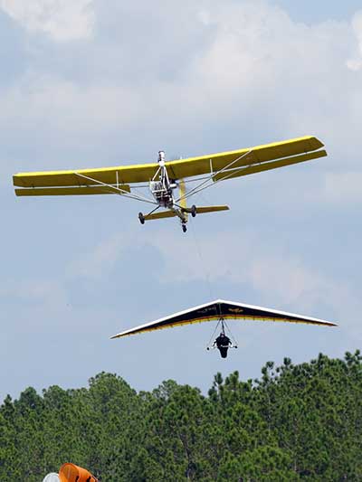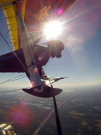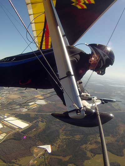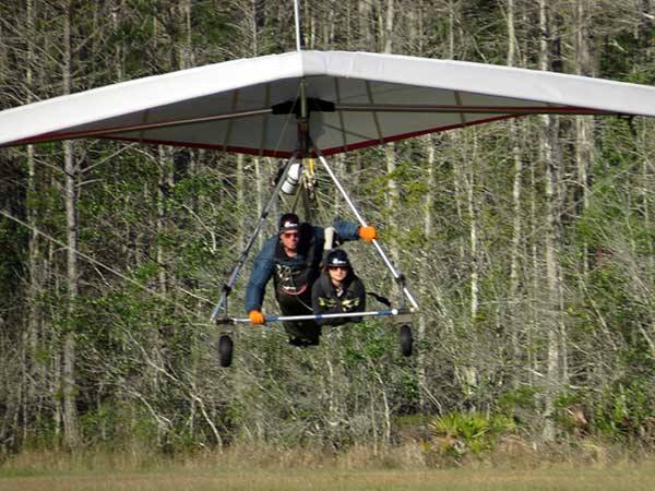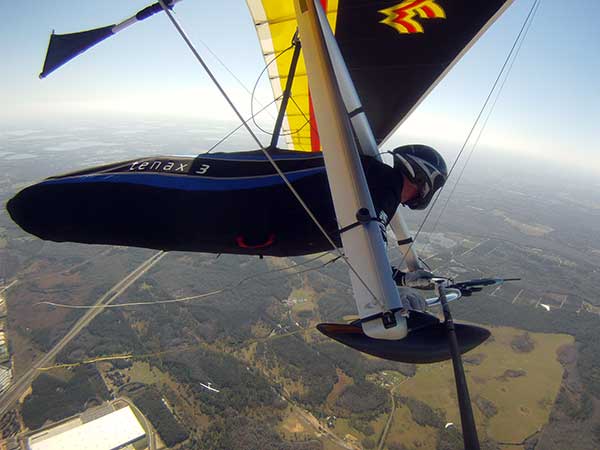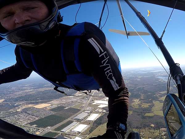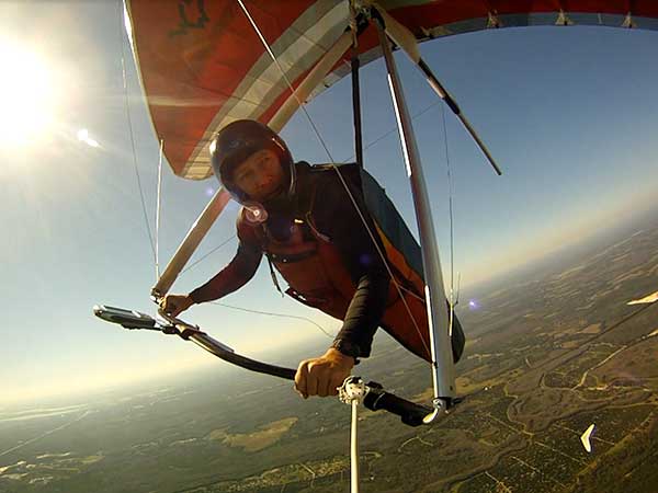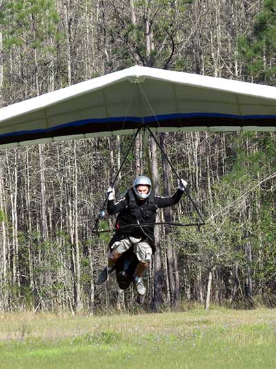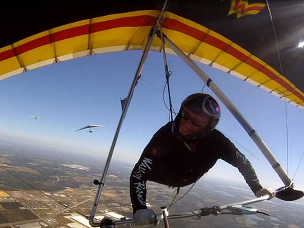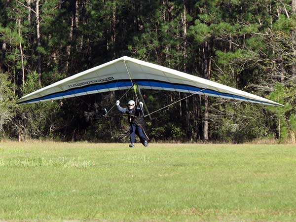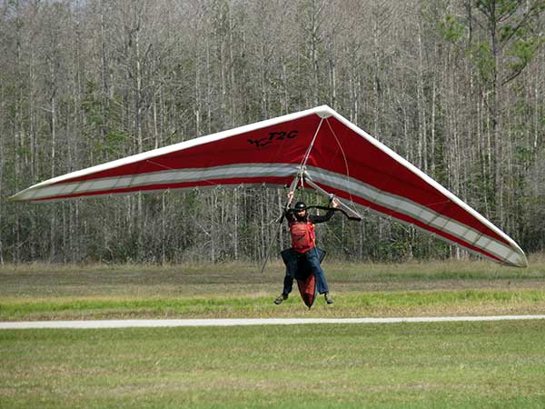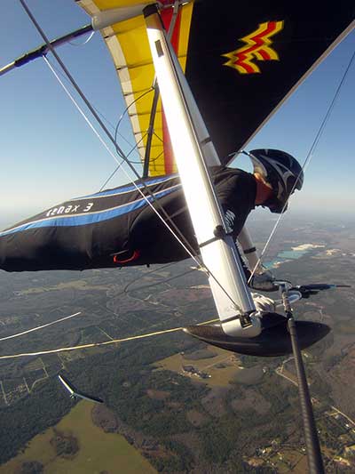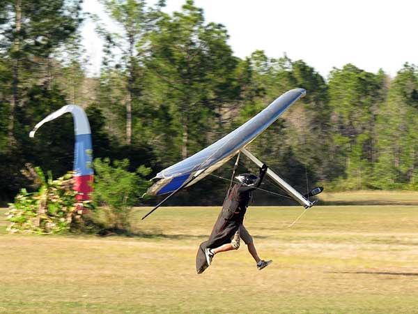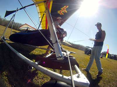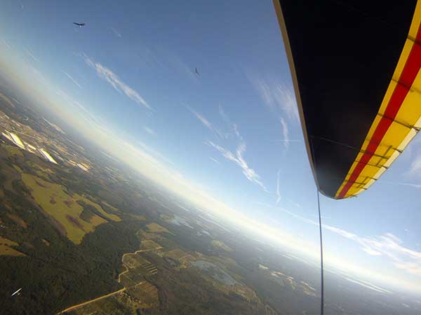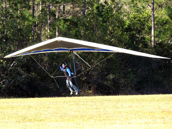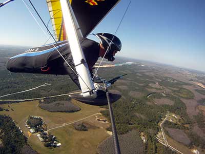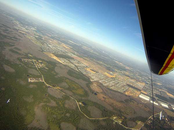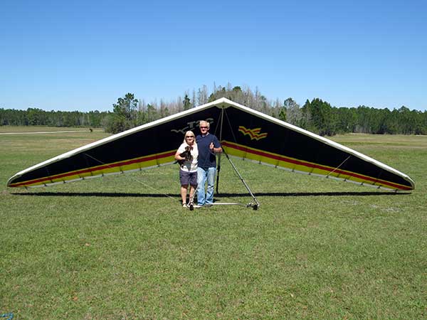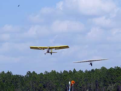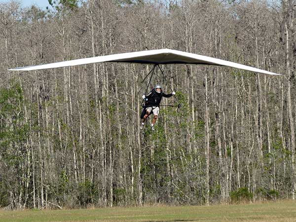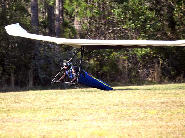 The Skydog Report We are leaving London, Ontario, Canada Saturday February 4, 2017 and hope to be at Wallaby Ranch by Monday. Monday February 6, 2017. We arrived Sunday evening at 9:30 and it was a successful two day drive with Finnegan. Monday morning we arranged or belongings in the cottage and I set up my glider after we took Finny for his first two mile walk in Florida around the flying field at Wallaby Ranch in the seventy degree temperature. Around noon we went for a bike ride on the Van Fleet trail and Maureen made 25 miles while Finnegan and I went fourteen miles. We saw two alligators in the swamp one being about eight feet long and the other, a 30 inch baby. After the bike ride we came back to the Ranch and I took a flight which only lasted 22 minutes. Others had taken off earlier and I think the longest flight was one hour and thirty minutes by Kip. I will try for an earlier take off on Tuesday. Tuesday, Wednesday and Thursday look to windy so we don't expect to fly until Friday and then the forecast looks good until Monday. Oded called Wednesday and said that George Adams and him are driving down south and will be here on Friday. Maureen went roller blading on Wednesday and I biked along with Finnegan in the basket. Thursday we took it easy and walked Finnegan around the field a few times. Around 9 pm Oded called to say that he and George were close to Charlotte Carolina and would be arriving at Wallaby around 1 pm. Friday morning. Friday February 10, 2016 we woke to find Oded and George had arrived and the sun was shinning but still too windy so we drove to Quest to pick up George's new T-2-C while Maureen went for a bike ride on the Van Fleet trail and now we are waiting for the wind to drop and hope to fly later today. We did not fly Friday. Saturday February 11, 2016 and we have a good day of flying. Sunny and no clouds but lots of lift. I get off first and hit good lift and a half hour later I am down to 840 feet over the warehouses but hit a good one and get up to over 4 grand. Oded and George come up and have good flights up to 4 grand also. George and I worked some lift for a while. There must have been about fifteen of us floating around. Chris Starbuck was way high for a while and I finally caught up to him and we circled together for a while. I was thermalling along Hyw. 27 near the warehouses and east close to the Omni Center for most of my flight and I saw a few pilots circling over the orange groves so I headed over that way but decided I would be better off over the warehouses so headed back and into the consistent lift. Griffin H. and Mike Barber were flying together for a while and I joined them for a bit. After a couple of hours I got down to 1,400 feet ato and then found some lift over the warehouses again and worked it back up to 4,400 feet ato. Finally after 3 hours and 6 minutes I landed and Mick Robson landed a half hour later. Sunday February 12, 2016 and here we go again with a sunny morning with lots of tandems and we are excited to have another great day in the sky. I get off first again as the other are hewing and hawing about the wind direction and where to start. I went over to the east side of the field and called Malcolm for a tow and he gathered up a couple of others to get us going. Paul towed me up to 2 grand into a good thermal and I pinned off and I worked the first one up to 3 grand. After a few minutes we had a good group in the sky and there was lift most everywhere. After a half hour I was in sink and I got down to 1,400 feet but luckily I found a thermal popping out of the landing field and took it up to over four grand. Oded and Scott L. joined me in a good one and then a lone sailplane joined us and Oded caught some good video. When the day was done I had been up to 4,700 feet ato and Oded topped out at 4,800 feet and Scott must have been up to that height also. Mick Robson also had a good flight in the Carbon Dragon. My airtime was 2 hours and 21 minutes. Oded logged two hours. George logged one hour. Mike Barber was last to land with a fine flair. Monday February 13, 2016 and another sunny morning with tandem going off by 8:30. Maureen and Oded go for a 80 Kilometre bike ride and George and I get some things done around the Ranch. The forecast says too windy today so no Flying. Tuesday February 14, 2016. The forecast was for cloudy by noon but the tandems went off nicely this morning and by noon the sky was looking pretty good with about 60% cloud cover. Scotty says that the forecast is for good lift so we get ready ad we are off by one pm. George get up first and I follow with Scott next and then Oded and Walt and others. Paul drops me in a good thermal at 1,700 feet and I work it up to 2,800 feet which was close to base. George looks to be struggling and Scott comes up and we get together in some good lift that takes us to base at three grand. I find sink and get down to 1,400 feet and I see George up high like 3 grand as I find lift just to the east of the field and I take it east over the warehouses and get to base again. Oded joins me and we circle together for a while and then Oded takes off to the south and I lose track of him. I move to the west over the landing field and get low again but find another good one coming out of the field and work it back over the warehouses again and a little farther north where I get good lift that takes me up to 4,432 feet ato. Scott and I fly together for a few minutes under the clouds. Later in my flight I get low again like 1,200 feet but again I find lift coming out of the landing field and I take it up to 3 grand and Mick Robson joins me and we have a fine time working the last lift of the day. I leave Mick close to Omni and head back for landing after a great 3 hour and 27 minute flight. Oded had landed just before me and Mick drifts in jus after me. Wednesday is very windy and the land sailors are zipping along the driveway. Maureen and Oded went through the B-Bar Bird sanctuary whil
