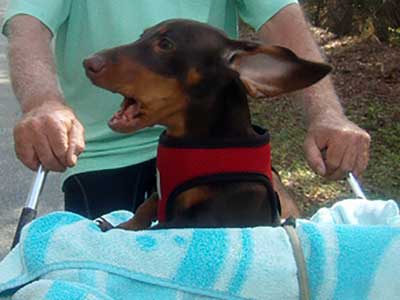 Finnegan Keeping An Eye On Us At Wallaby Ranch in the 80 Degree Temps. |