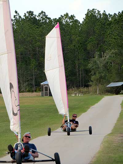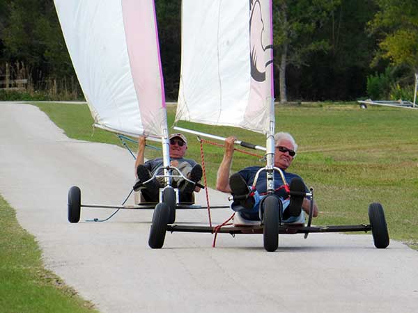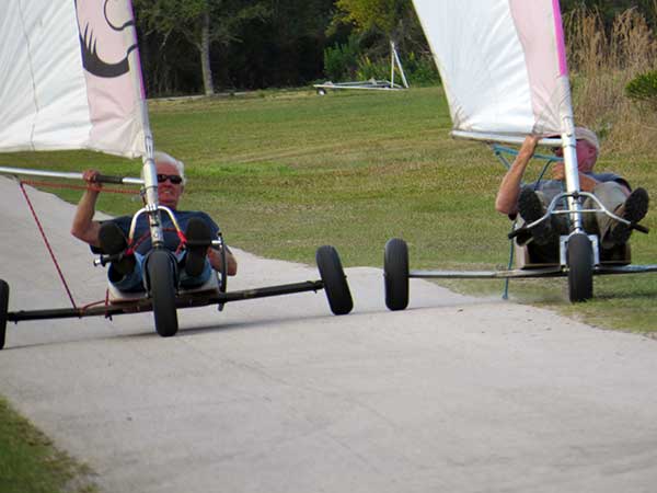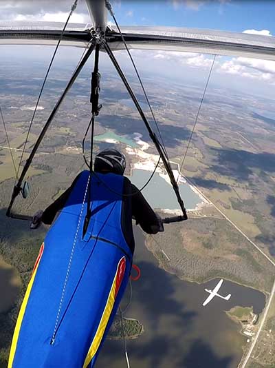 The Skydog Report Oded and I fly to Orlando on Saturday March 4th Sunday March 5, 2017 and we have a sunny, windy day so we get the land sailors going and have a blast racing up and down the driveway. Monday, same thing as Sunday and we are looking forward to Tuesday as the forecast looks possible for flying. Tuesday March 7, 2017 and the tandems are flying a 8 am so maybe we will get up later. Tom NeJame drops by with his Silent 2 electric sailplane and gets off around noon. Still pretty windy but by one pm it drops off some and Oded and I set up our gliders. I am first off at 2 pm and Fay Barber drops me in a good one and I take it up to 4,800 feet at the 13 minute mark in my flight. I see Oded being towed up and watch him as he works down low and then I lose sight of Oded. I have worked lift over the sand pitts and stay above 4 grand for a half hour or more. I see Mick Robson being towed up and watch as he works his way up to over five grand. I hit a boomer and take it up to just over six grand and it is sucking like crazy saying Bob, I am going to swallow you up so I pull in hard and after five minutes I am down to 5 grand and I was scared in that one so I did not go looking for more and went in for a landing with a flight time of 1 hour and 15 minutes and had been up to 6,167 feet. Oded was waiting for me on the ground and Mick was still up very high and landed later with a three hour flight in his Carbon Dragon. Tommy also had a great flight of over three hours. Wednesday March 8, 2017 Tandems went well at 8 am and I took a flight on Oded's Atos VQ and the bar pressure is incredibly low. No effort involved to fly this baby. Pete Pilfer joins us after a 3 year hiatus. Oded and I plan to fly to Quest and back but in the air we decided not to try today even though we had the radios ready. Mikey says it looks like an early day so we get ready and Mike takes off at 12:30 with Kip following and then me and Oded and many others. Fay put me into a good one and I took it up to 4,800 feet ato by the 13 minute mark. Oded worked his way up to 4,300 feet and there were lots of sink areas and after 48 minutes I found my way down to a landing. I am in line again quickly and Fay puts me into another good one and I am able to find Scotty and we flew together for a half hour or so and Scotty is real smooth to fly with. Aric and I also shared a thermal for a bit. Scotty and I get up to base at 5,300 feet ato and we go searching up wind for another but don't find it so I head back to the warehouses where I find a bit and last in it for an extra 20 minutes and land with a 1 hour and 6 minute flight. Oded has landed after a one and one half hour flight and is eager to go again so away we go but his last one turns out to be a 20 minute sledder. Mikey Barber shows up late and lands with a 3 hour and 40 minute flight after tagging Quest Air. It was a fun but challenging day and lots of us have a great time in the air. Thursday March 9, 2017 The tandems are off at 8am on another sunny day with light winds forecast for all day. Oded and I are planning to fly to Quest Air and back. Around 12:30 Oded says let's go Bob but I needed a bite to eat first and by the time I got in line I was number eight and Oded is off first. Oded takes a little trip south to the hospital waiting for me to get up. Paul Harrison puts me into a good thermal and waves me off at 1,400 feet ato. I grab it and center up and I am at 5 grand at the thirteen minute mark. I hang around for ten minutes and Oded shows up below me and we work together and head north along Hyw. 27. I stay a little east of 27 just on the edge of the shadow of a line of clouds and I stay above 5 grand. Oded shades in under me and hits the sweet spot and climbs out and we are off and when I get to Sand Mine Road I don't see Oded anywhere and I am nervous about landing out with the skids. I venture a mile past Sand Mine Road and still not seeing Oded I get worried about flying alone and head back to Wallaby. When I get back I am down to 1,200 feet and I don't find a climb so I land with a 1 hour flight. I call Malcolm for another tow and soon I am up again and climbing up to over five grand again. Wow, what a day with great lift. I take a run south to the hospital on 27 and back getting down to 2 grand but I find lift again over the beautifully fragrant orange groves and take it up to 6,541 feet agl. in front of a cloud. I see Rick up there and Mick too and we trade places for a bit. Scotty was up there too but we did not get close today. Marcelo Brosig and Marcelo Pereira from Brazil were up there too and I saw Leon up real high too. I had what I thought was a good idea and headed upwind west to the next big could and by the time I got there I was down to 4 grand and no lift to be found so I sped back to Wallaby with only 1,200 feet above the Ranch and I was soon on the ground with a fight time of 2 hours and ten minutes. A half hour later Oded comes in for a landing after his flight to Quest and back to Wallaby which lasted 5 hours. Oded was elated as he had been wanting to do this for a couple of years now. Mick and Rick were still up at sunset so they must have had 5 hour flights as well. Davis and the pilots from Quest flew around the Green swamp which must be a 100 mile flight. That was an exceptional day. Friday March 10, 2017 and another windy day so I spend some time on the Land Sailor racing Mick and Leon. Oded and I pack up our gliders as we are flying home Saturday morning. This has been a great one week trip with Thursday possibly being one of the best days of the year. |
