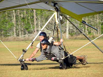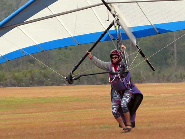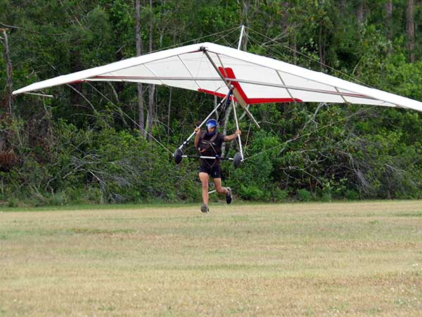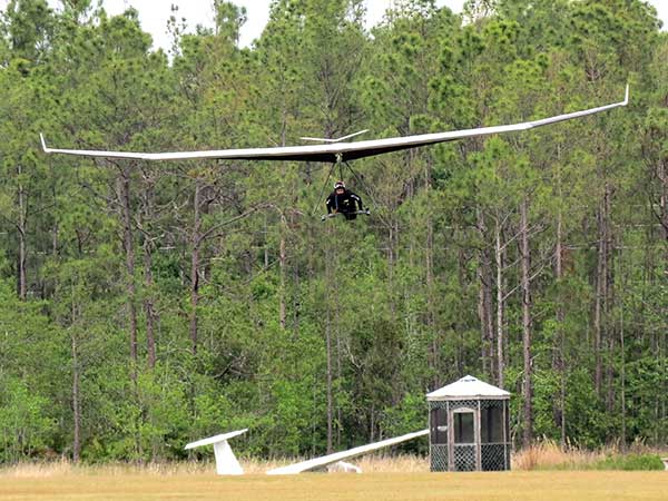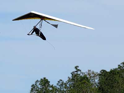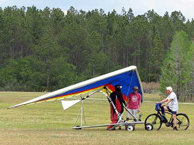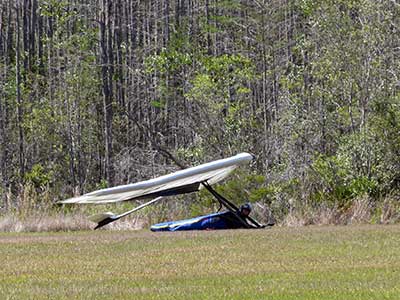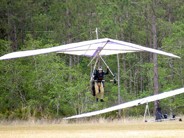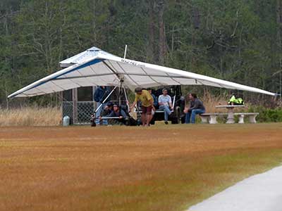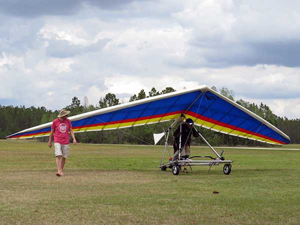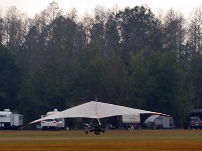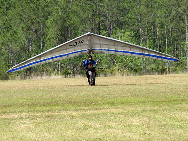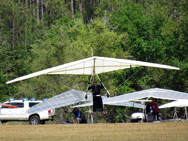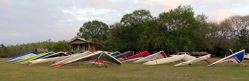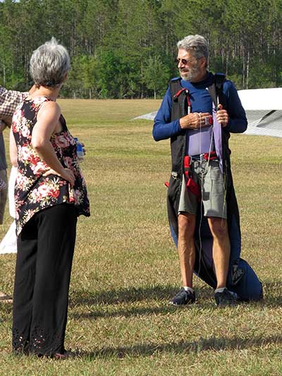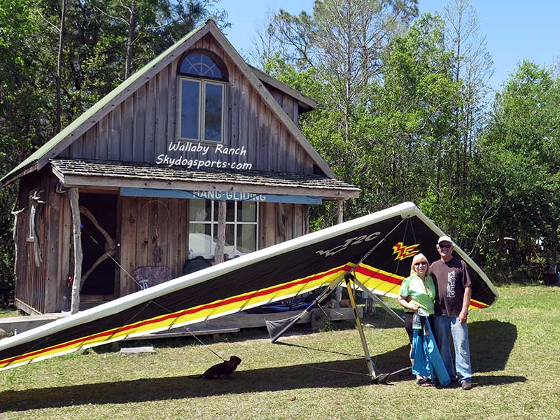 The Skydog Report Saturday March 10, 2018 Maureen, Finnegan and I leave for a three week vacation in Florida. We arrive at Wallaby Ranch Sunday evening at nine and move into Pete and Susan's beautiful cottage. Monday morning starts out cloudy with a shower or two and by noon the sky clears and we have a sunny windy afternoon giving us time to settle in and take Finnegan for a walk. Oded and George tell us about their flights on Sunday and George Adams took a XC to Quest Air while Oded took a run north on Hyw 27 to Walmart and back. Tuesday March 13, 2018 we have a sunny morning and Maureen goes for a 26 mile bike ride while I set up my Wills Wing T2C. By 1:30 things are starting to look pretty good so Oded and I encourage George to set up his glider and we get our gliders over to the east launch area ready for take off. Malcolm and the crew come over to get us off safely. Mark Johnson tows me up first and the air is quite bumpy and I hang on to 2,500 feet. I am finding some thermal activity but can't seem to keep in it and finally get down to 1,900 feet. I finally find a better thermal over the west edge of the field and work it downwind to the east and when I am over the warehouses the lift turns on nicely and I take it up to 3,830 feet ato. The lift seems more consistent east of 27 and I hang out there while watching Mark tow Oded up and far to the west. Finally after twenty minutes Oded comes in below me and we play in the lift for a while as George get towed up. George gets off at 1,500 and works his but off to stay aloft getting down to 700 feet and finally working back up to 3,600 feet and flying with me over the cloverleaf at 27 and Hyw 4. George heads north and I loose sight of him and I see Oded getting low over the Ranch and soon landing. I follow a lift line to the east on Hyw 4 parallel to the Omni centre and then head back toward Wallaby where I get down to 1,800 feet and I find another thermal that gets me up to 2,600 feet. The air today is rather Rasty and I am getting tired so I head in for a landing with a flight time of 1 hr and 23 minutes. George comes in a few minutes later with a flight time of one hour and 13 minutes. I expect that Oded's flight lasted about 50 minutes. We all landed safely so a good stat to our vacation this time. Around 5 pm Rob and Shawn from Ohio took smooth air flight and were able to stick for almost an hour so they were happy with their first flights at Wallaby Ranch. Malcolm took Fons from Holland up for his training flight at the end of the day. |