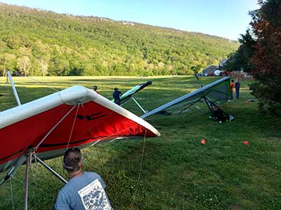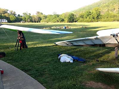 The Skydog Report Our Final Trip This Spring Sunday April 29 th Oded and I fly to Wallaby from Rochester to retrieve Oded's van and when we arrive at Wallaby Ranch the local pilots have been flying all day and one of the visiting pilots from Japan has flown for 8-1/2 hours so we jammed our glider together and we took off at 5 pm. I was off first and did not find any great lift and sank out after 23 minutes. By now Oded was in the air and doing great so Oliver towed me up again and this time right into a big fat thermal that took me to four grand. Oded was up there too and we all over the area with Oded flying to Walmart and back. Both of us got up to 7, 490 feet. well, I was a bit lower at 7,450 feet so it was a spectacular day. We both landed with 2 hours and 20 minutes around eight o'clock and hurried to pack up or gliders and head off to Lookout Mountain flight park for Monday flying as the weather looked perfect for Lookout. Sunday April 29 th o and we arrive at Lookout Mt. at 3 pm hoping for a tow from the landing area but when we arrive Dean Funk is setting up along with about ten other pilots and Dean say Hi Bob and get your glider set up as it is a great day. Well, I checked conditions on launch and the wind appeared to be coming from the left at 45 degrees and only in little puffs so I encouraged Oded to drive to the bottom for some towing. We watched as four pilots took off the ramp with only Heckman staying up and we were off to the bottom. Rushed our gliders together again and got in line for a tow from Dave Miller. I went first again and the tow was pretty smooth and Dave took me above the upper launch pad maybe a thousand feet and I was soon in a good thermal chasing Dean and others a bit to the south of launch. Wow, it was cranking by then and I circled up to Dean and we to some video or so I thought but later discovered that I has set the camera to single shots so I have 10,000 photos of my flight. Dean had three cameras on so He should have some great video. Soon Oded was up there with us and it was like we could fly anywhere and there was abundant lift. We flew until the sun was getting low and I followed Oded in for smooth landings. We both had great flights up to 6,500 asl and mine was 1 hour and 30 minutes and Oded was up for one hour and fifteen minutes. This was the first time that I had flow at Lookout in twenty years so it was very exciting for me and we could not have hit it better for lift. We noticed that many of the pilots flying at Lookout were younger ones like under forty and a few likely 25 year olds so that was refreshing to see. We had a great time and hope to get back to Lookout Mt. real soon. |