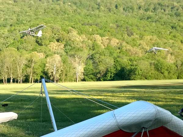 The Skydog Report Sunday April 01, 2018 and finally a day with light winds and some cumulous to help. Many pilots showed up early and at 12:30 a line was forming at the northwest edge of the field. I was rushing to get in line and I was thirteenth to get into the air. I was not able to stick although about seven pilots were clinging to the clouds and getting high. I landed with a 15 minute flight. By now it was the 3 pm lunch break so we had to wait until after lunch. Brian and Matt Jackson were anxious to get a flight in so they were first off with me third. Mark towed me about three miles to the south east just to find some lift. Sure enough it was there and I got up to over four grand. I could not see Brian and Matt anywhere but Rick Bremer was next off and Rick worked his way up to me and finally blew me away with his Atos VQ. Rick Mullins joined us at four grand in his sailplane. Rick Mullins and I were thermalling together near the end of my 1 hour and 55 minutes that took me up to 4,650 feet ato. Easter Sunday was good to us. |