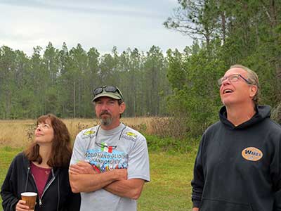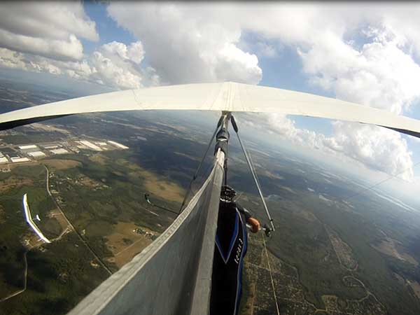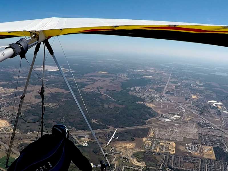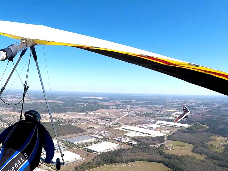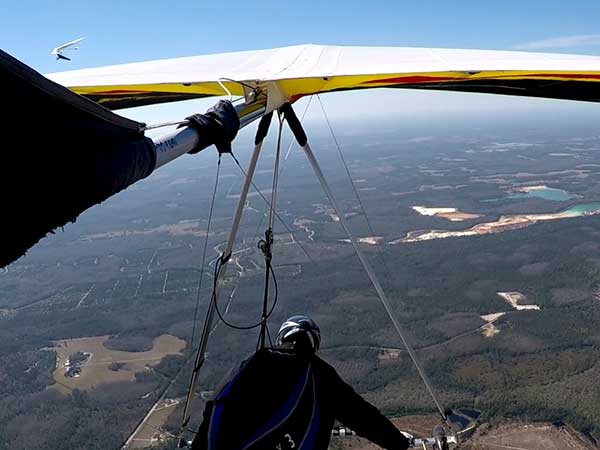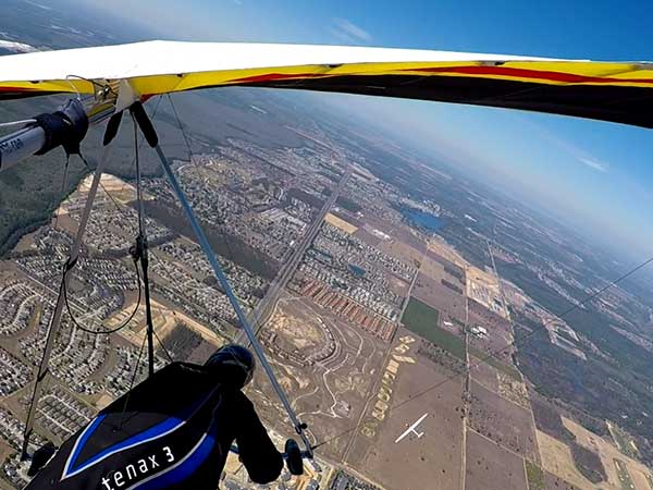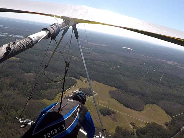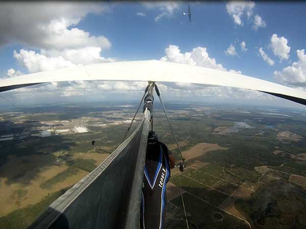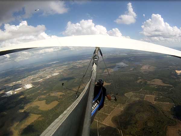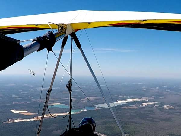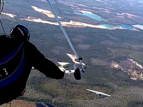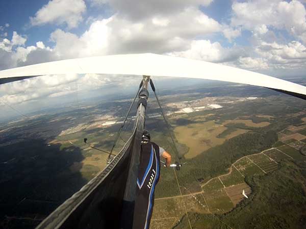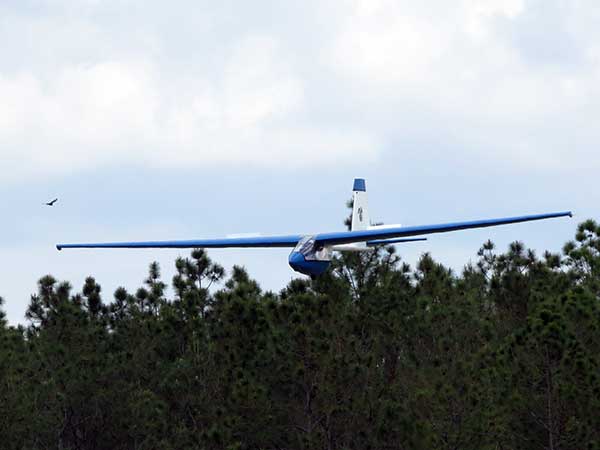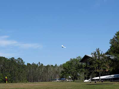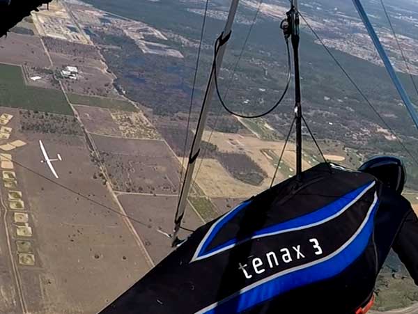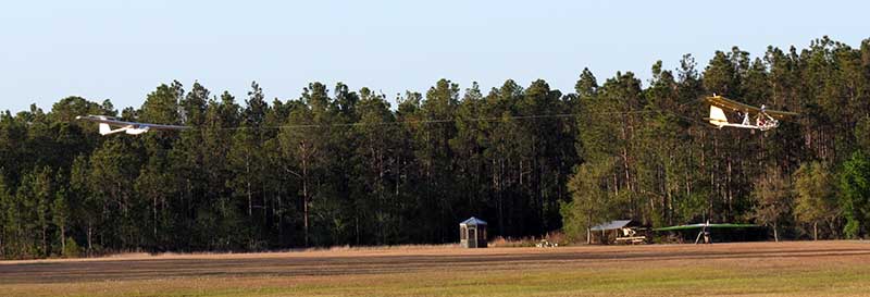 The Skydog Report Thursday March 15, 2018 and another blue sky day at Wallaby Ranch. We could hear the buzzing of the tugs at 8 am and the tandems went until 10 am and then breakfast is on. Maureen takes her bike on the Van Fleet trail for 25 miles while I take a flight around 2 pm. George Adams takes off first and I am second and the tows are smoother today. Mark tows me into a decent thermal over the orange groves and I putter around in it for a few minutes and then follow the lift east over and past the warehouses on Hyw 27 coming close to the Omni golf resort. I see George struggling over the ranch and down low so he must have missed the lift line and then I see Oded down around 1,500 feet and after a few minutes Oded is right up with me at 4,300 feet. Oded soon overtakes me and I loose sight of him. George lands just west of the warehouses and to the north of Dean Still Road. I fly west into the wind and find heavy sink and land with a 53 minute flight. I get a call from George asking for a retrieval and away I go to get him. Just after we get back to the ranch, Oded lands after his one hour and thirty minute flight. Part two - a late day flight and Griffin Hofstadter and six other pilots form a line and we are off again. I get off second and find good lift over the orange groves and take it up to over 3 grand and then follow another thermal to the east and just before the warehouses it turns on nicely and I take it farther east almost to Omi and up to 4,100 feet ato. Griffin joins me for a while and then he ventures west sinking badly. Oded is working hard down at 2 grand and finally comes up to about 400 feet below me and we work the weak late day lift for a half our staying around 2,500 feet. Finally I see Oded and all the others have landed and I get lucky enough to stay in some weak lift just west of the warehouses for another 20 minutes and then head to Wallaby Ranch for a nice landing after my 1 hour and 25 minute flight. OK, that was a pretty good day for most of us and I needed the practice after not flying since early December 2017. Rob Skinner had two good flights today also. |