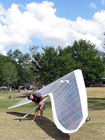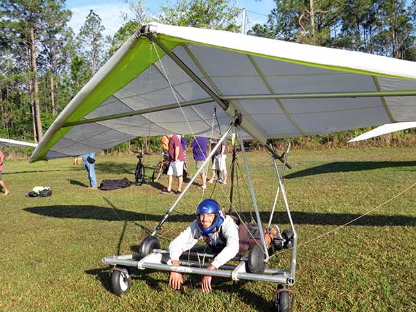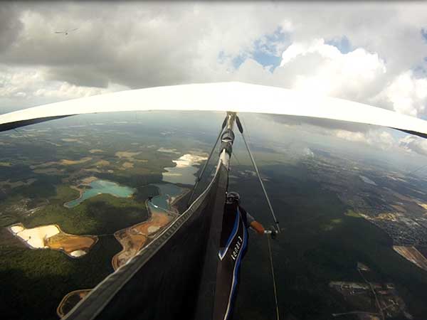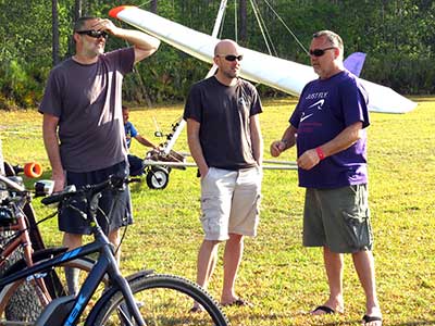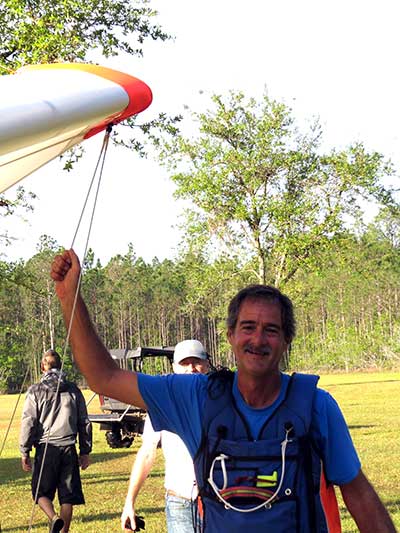 The Skydog Report Tuesday April 03, 2018 and Maureen and I take Finnegan to the beach in St Petersburg Fl. and we have wonderful day swimming, Biking and bike riding. When we return in the evening we hear about many of the great flights that everyone had here at Wallaby Ranch. Rick Bremmer did the longest flight of the day at four hours and fifteen minutes landing at 7 pm. Most everyone got up to cloudbase at over 5 grand. Steve, Dave and Kendricks from Wills Wing arrive as we are leaving so Demo Days begins. A good flight was also had by Canadian pilot Mark Bourbonnais who flew 155 kilometres from Quest Air. Congrats Mark. |