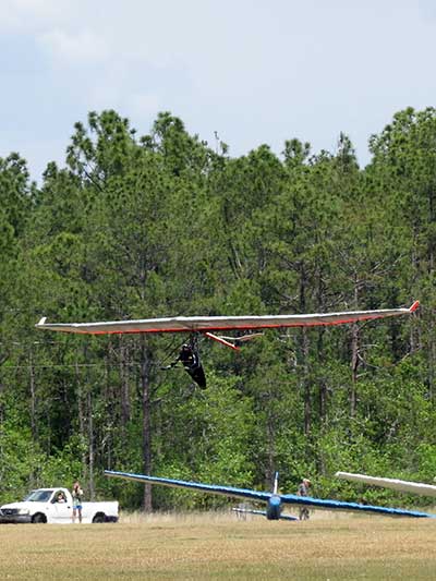 The Skydog Report Friday March 16, 2018 and another beautiful blue sky day at Wallaby Ranch with the morning tandems filling the sky and the buzz of the Dragonflies filling the tranquility of the air. Today Rick Bremer will be joining us along with a few others that I have not met yet. Canadian, Willie VanCaulert drops in for a morning visit and to see the Wallaby surroundings. Willie is flying in the Green Swamp Challenge at Quest Air starting on Saturday. Oded Kalir and Rob Skinner are also heading off to Quest Air to fly in the comp after flying here at the ranch today. Around two pm I head down the driveway for a south wind take off and the wind is crossing from the west but we manage to get airborne me going first and Rob Skinner right behind. Fay Barber puts me into some great lift over the orange groves and I take it up to 4 grand at the 20 minute time in my flight and I have drifted over Hyw 27 and close to Omin centre again. Oded is missing a glove so he get off at the end of the line. The others are struggling over the ranch and a couple get up to 3 grand while I hang out to the east at 4,500 feet ato. I take a run south to Hyw 4 and the lift is less down there so I scoot back and it is still pumping to the east of the warehouses so I play in the lift for a while. At the one hour point in my flight I see three sailplanes coming from the south like in the three days before when they are on a task. We thermal together for five minutes and Oded shows up and turns with us for a few minutes and then Oded finds it to crowded and leaves the vicinity. The next thing I know there are another eight sailplanes joining us. One by one they head out on course to the north and after twenty minutes they are all gone. The highest I got while flying with the sailplanes was 5,030 feet ato or 5,200 MSL. Next I take a run towards the ranch and nothing but sink all the way there and I arrive with 700 feet so I play along the tree line and finally a thermal comes off the landing field and I take it back up to 3,500 feet leaving me a mile east of Hyw 27. Now I see a line of gliders ready to launch after 4 pm and Rick Bremer is among them. Now the air has smoothed out some and the new group all have nice one hour flights and Rob Skinner get 1-1/2 hours and up to 4,500 feet. I take a run to the ranch and again get down to 800 feet and again get a thermal off the landing field and I take it back to the east and up to only 2,600 feet this time and now I am getting tired and head in for a landing and when I get to the edge of the landing field there is still some lift along the tree line so I spend twenty minutes cruising back and forth and finally land with an airtime of 2 hours and 32 minutes. Rick Bremer lands a few mints later and then finally Oded touches down with duration of 3 hours and forty minutes. Lots of pilots had a great day. It started out fairly rasty but after 4 pm it became smoother. Early in my flight I had a wire slap and then a dump out of a thermal that gave me quite a thrill as I thought that I may go into a tumble so I was checking for my parachute handle in preparation for another nasty bit of air but it did not happen again and it did get smoother later. We are looking forward to a smoother day on Saturday and some of my buddies will be at Quest for the Green Swamp Challenge. I have some photos coming soon. |