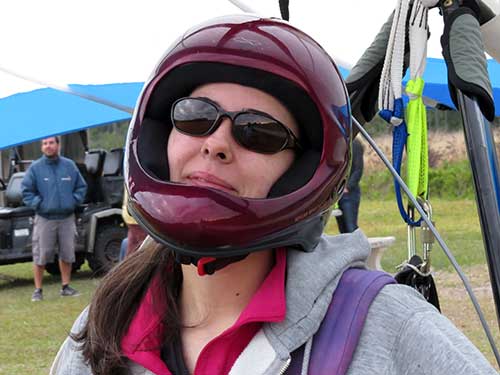 The Skydog Report Monday March 19, 2018 is an overcast day with few sunny breaks. Fons was anxious to get his first solo flight and Kate wanted to take her Falcon IV up so the Dragonfly is revving up. Fons from Holland takes a tandem with Malcolm and then Fons is ready for his first solo flight and he makes it look easy even with a 15 mph south wind. Kate takes a nice flight and also has a nice landing. Although the sun comes out nicely by noon no one wants to fly today because the wind is getting stronger with a chance of thunderstorms. The comp. at Quest is called off for today also. |