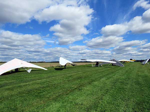 The Skydog Report Friday September 19, 2020 Patrick O'Donnell and I head up to SOGA field and it turns out to be the Best day of the year. Rod Reiger logged near four hours and most of us got up to 5,700 feet above the field or 7,300 feet MSL. Cloud base was often 5,500 feet ato. I flew into sink and landed with 46 minutes airtime. Should have gone again as the gang was getting high until 6pm. Tuesday September 22nd we went again and this time only got two sledders of 19 minutes. Kenny stayed up one hour on the Atos. |